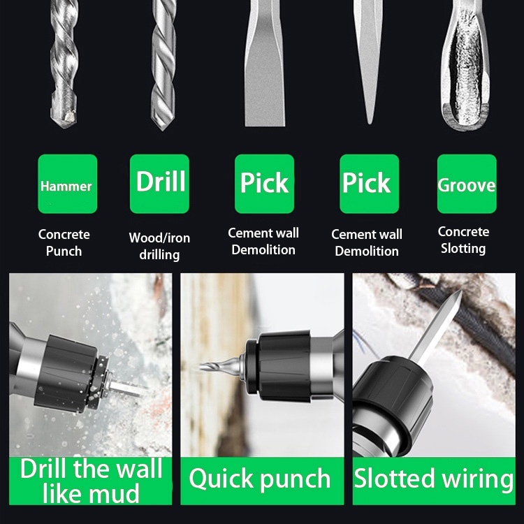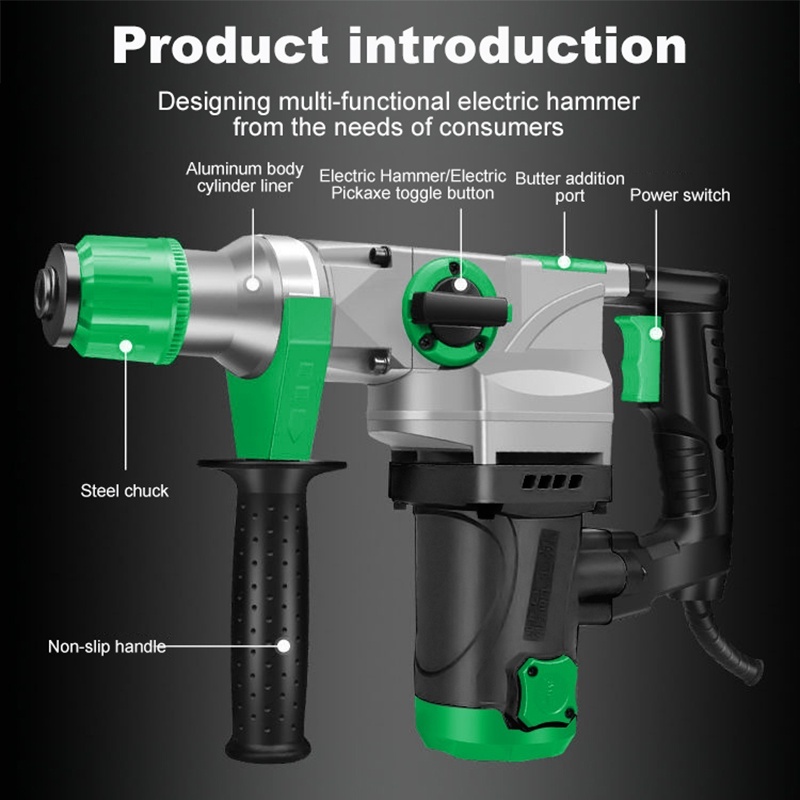 Chipping Hammer 2500W 220V High Power Heavy Duty Professional Chipping Gun 3in1 Rotary Hammer Drill