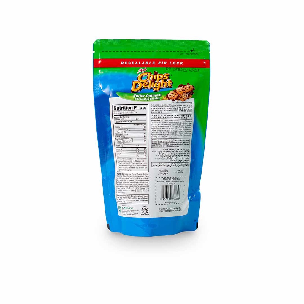 Chips Delight Mini Butter Oatmeal Chocolate Chip Cookies 130g