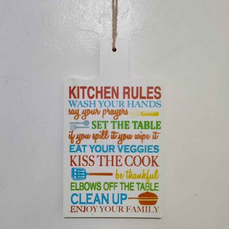 Chopping Board Kitchen Rules Quotes Wood Wall Decor