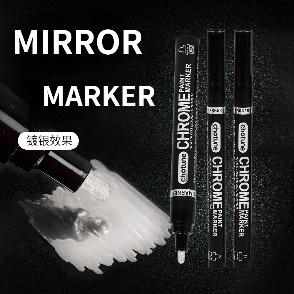 Chotune mirror pen reflective chrome marker pen electroplated silver paint pen waterproof gloss pen DIY