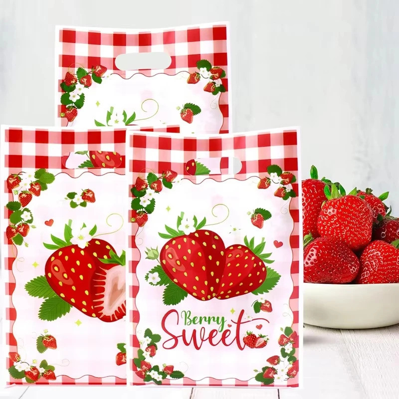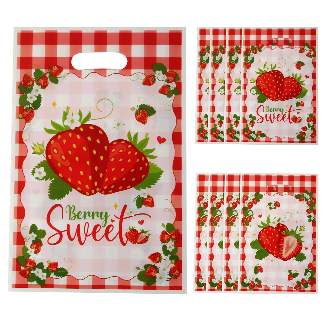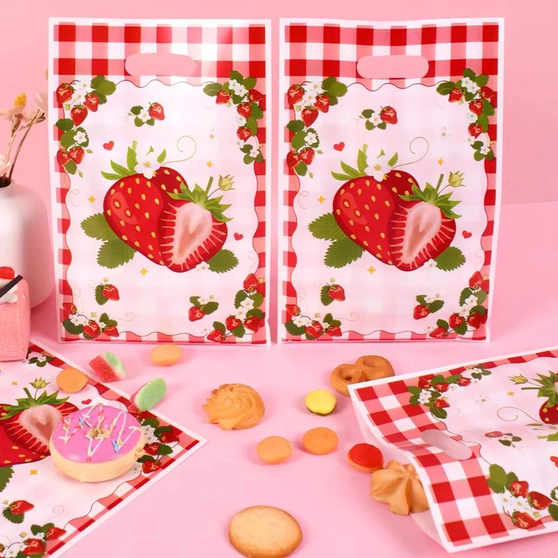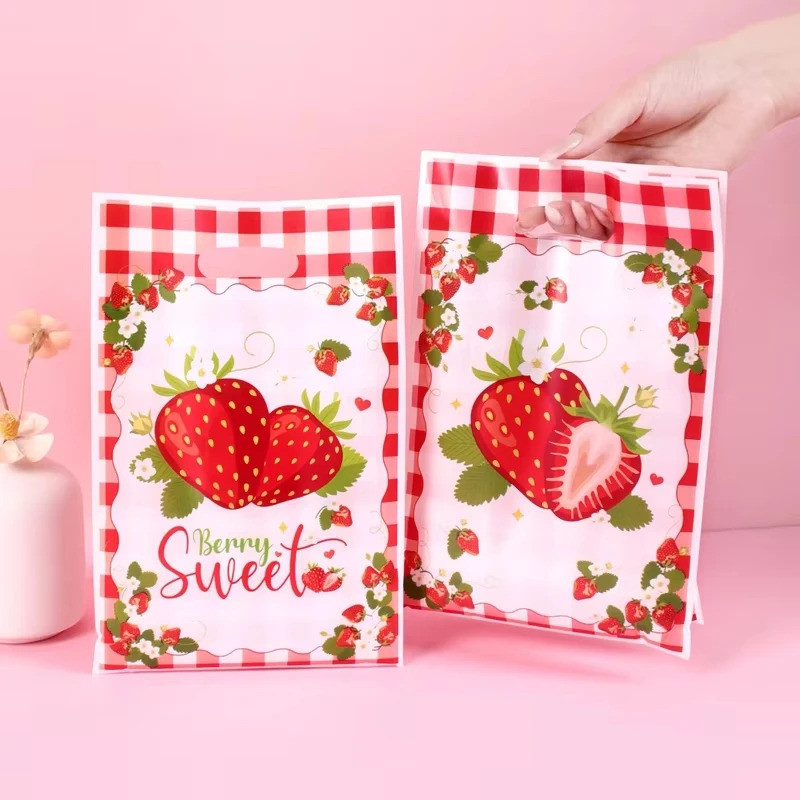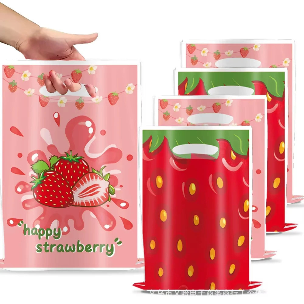Pink Strawberry Party Plastic Goodie Bags Loot bags Candy Gift Bags For Wedding Birthday Party Decoration plastic loot bags F7GC