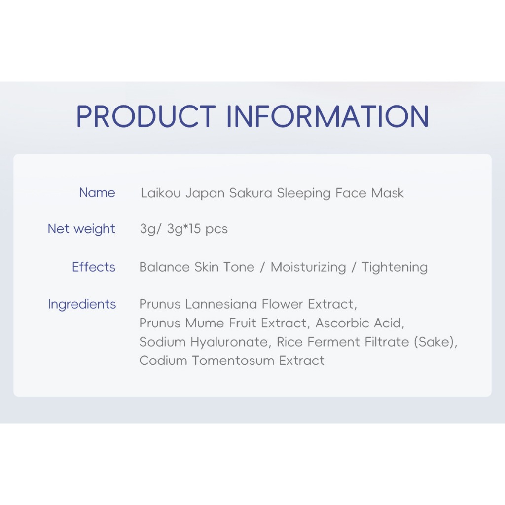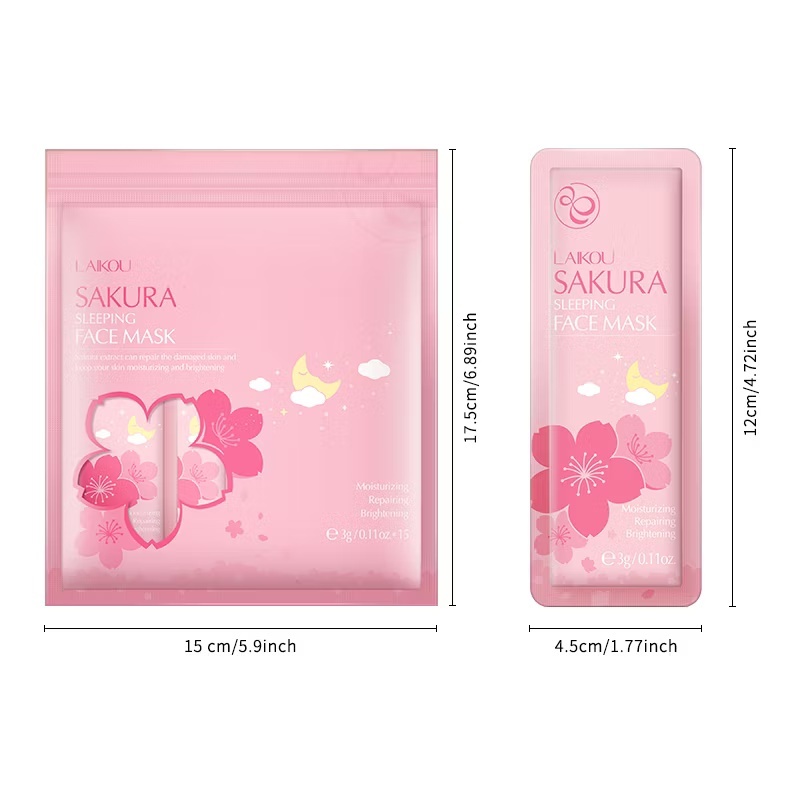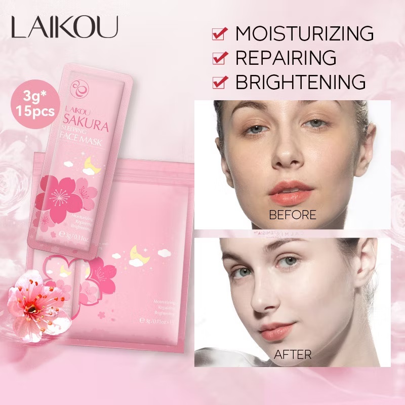 【LAIKOU】 Sakura Sleeping Mask Anti-acne Skin Care Moisturizing Soothing Hydrating 3gx15pcs