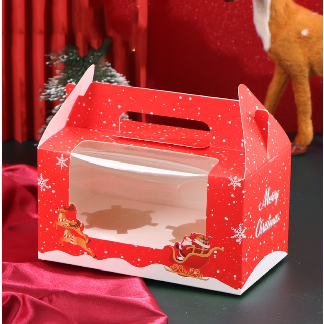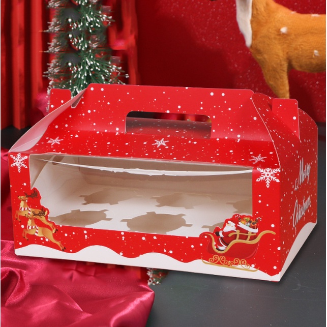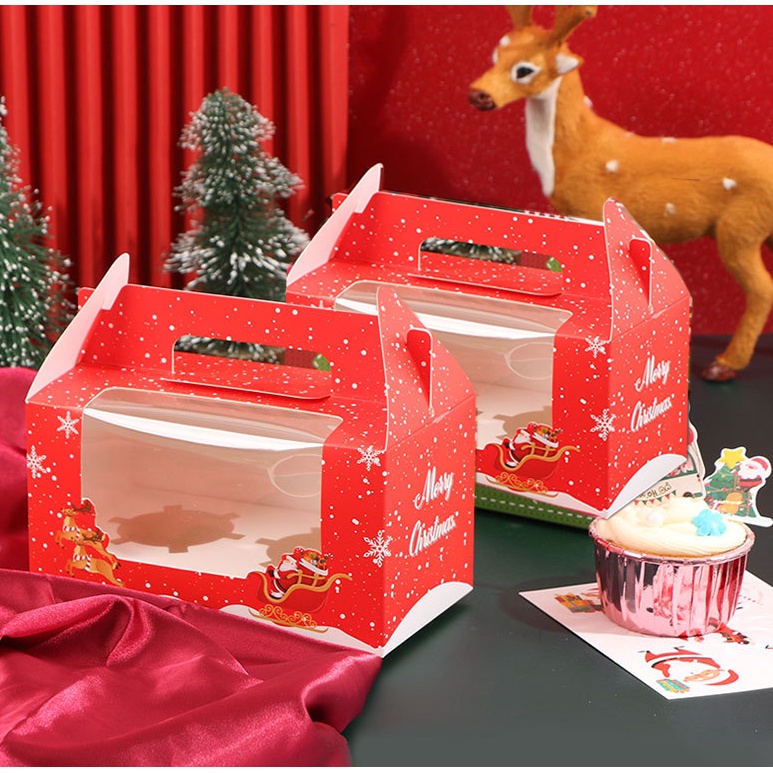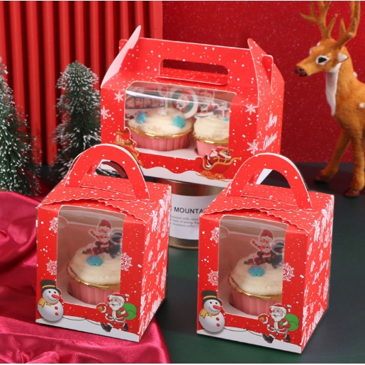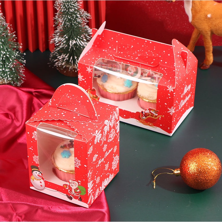5PCS Christmas Cupcake box with Handle, Muffin Box Cupcakes Box, Pastry Box (1 ,2, 4, 6 holes)