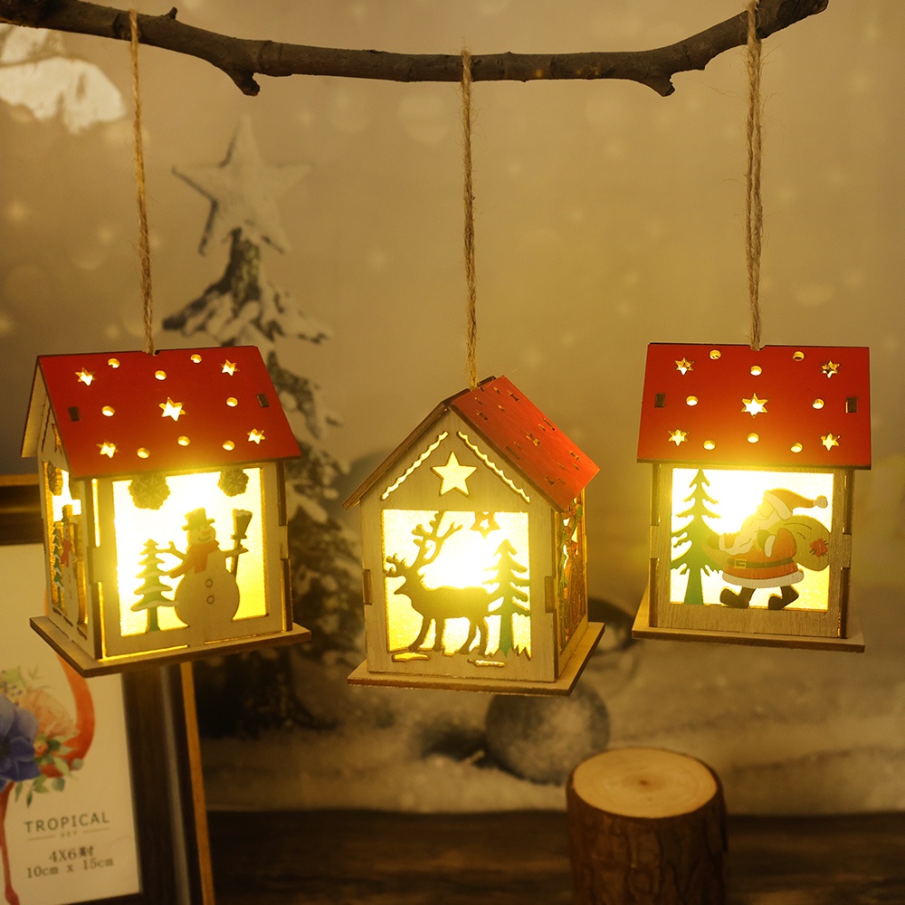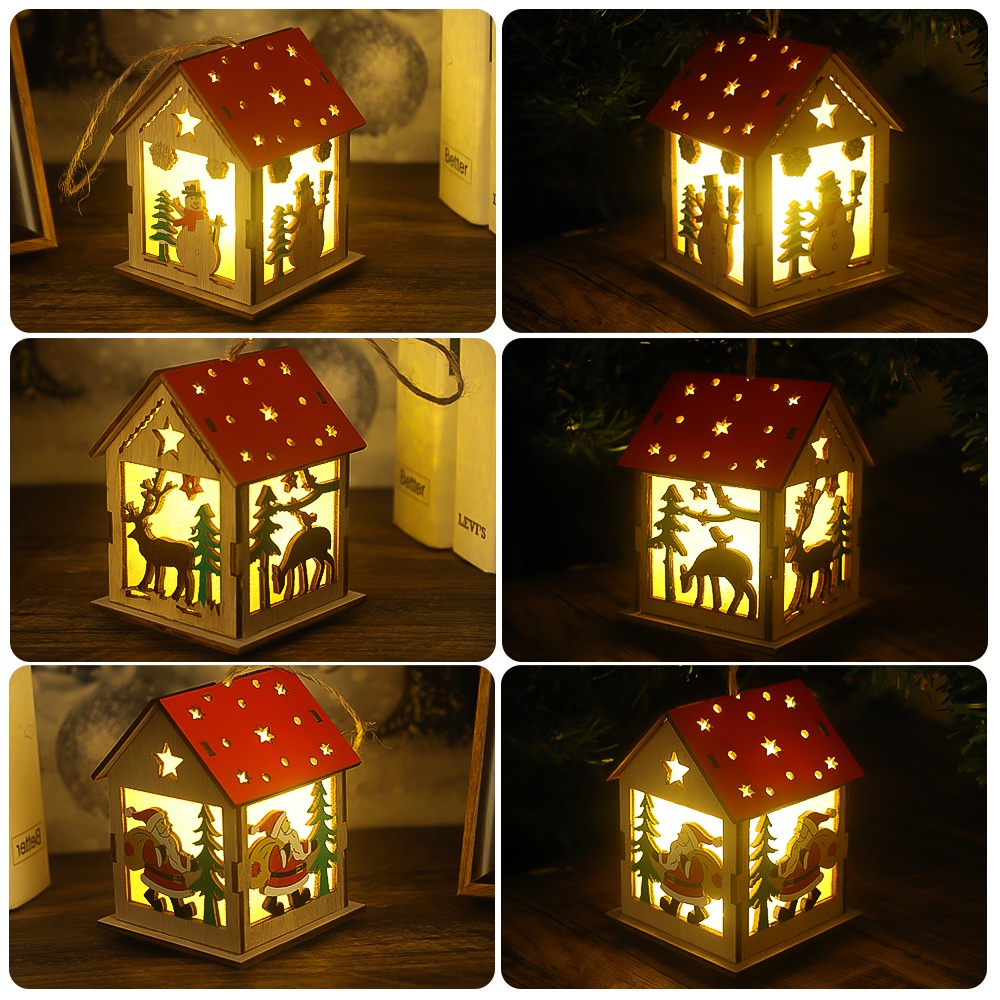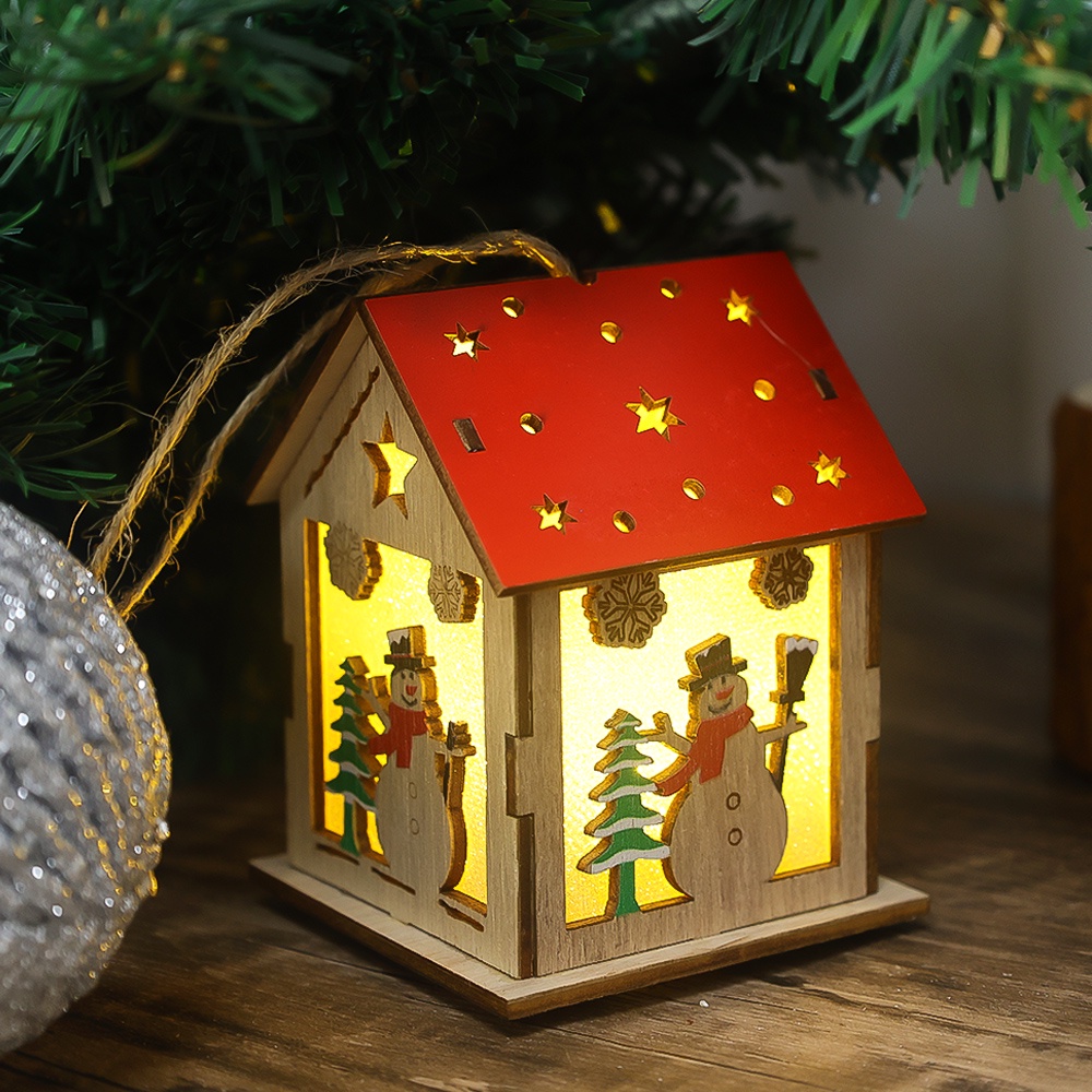 Christmas Home Decoration / LED Luminous Wood House / Christmas Tree Haning Pendant / Mini Glowing Cabin Night Lamp / Creative Light Wind Lantern Party Favors