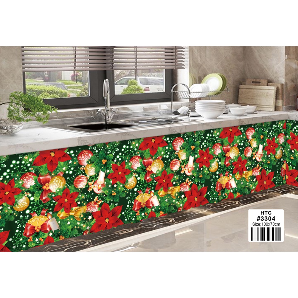 Christmas Lababo Kitchen Decoration Under Sink Curtain Short Curtains Red Deer 1PC