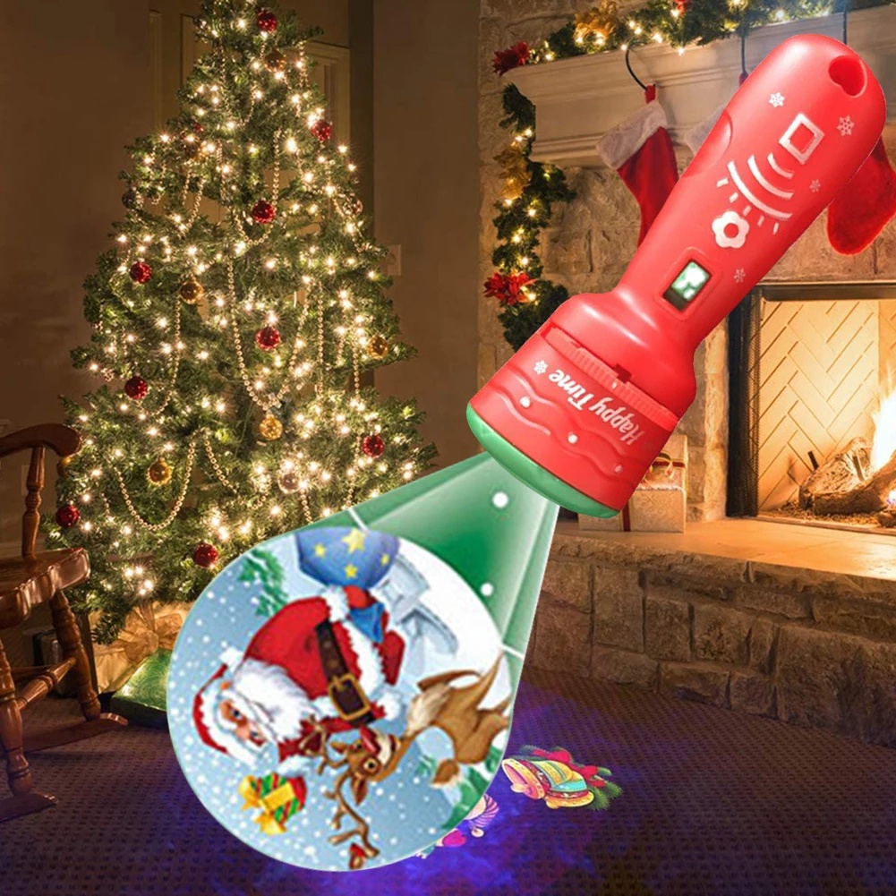 Christmas Projector Flashlight Light Led 24 Patterns Cartoon Santa Xmas Tree Snowflake Landscape Projection Kids Early Education Toys New Year Gift