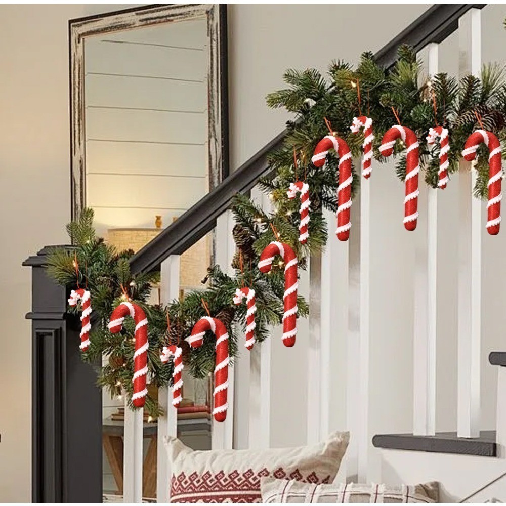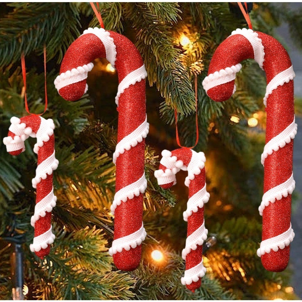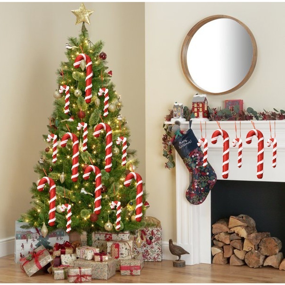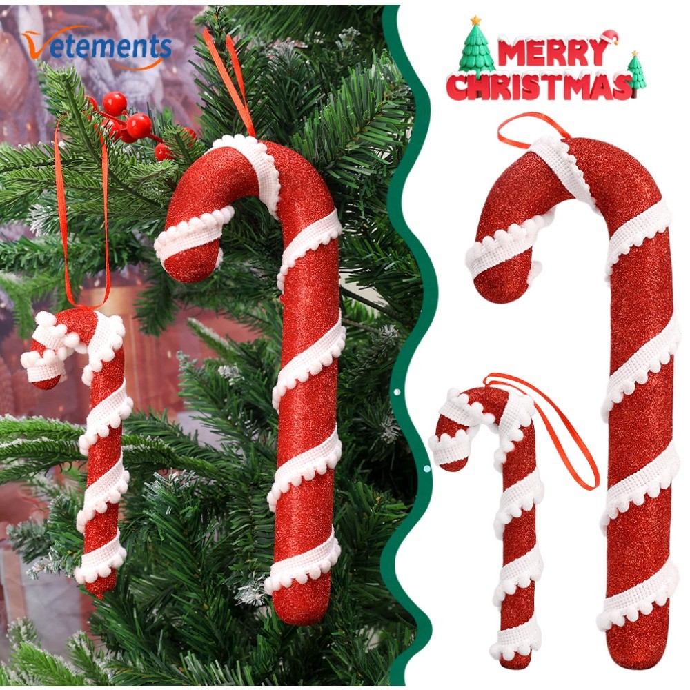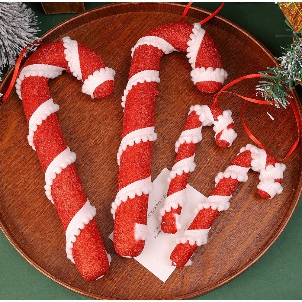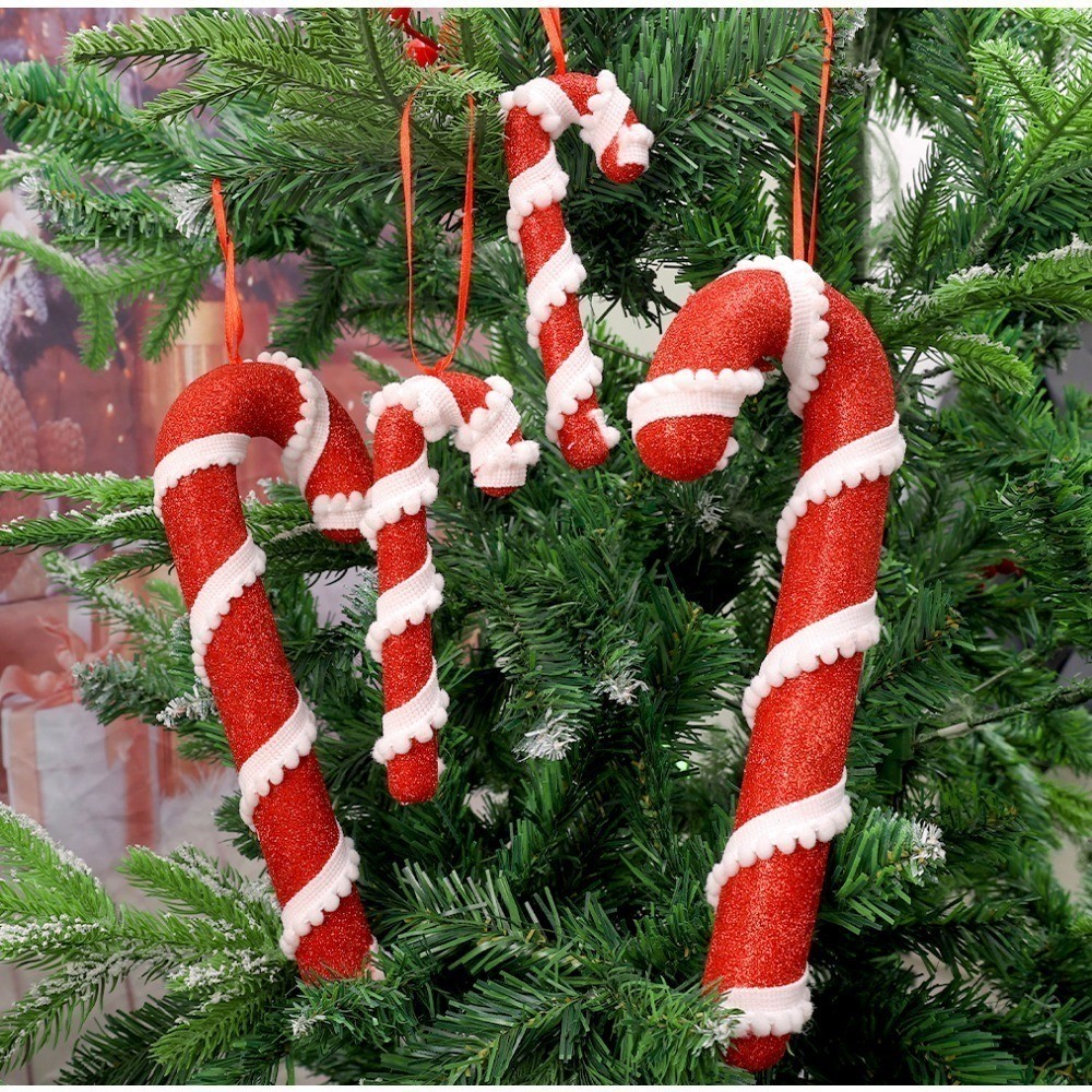 Christmas Red White Stripes Candy Canes Decor Xmas Tree Fashion Hanging Ornaments Classic Red Foam Candy Crutch Pendant New Year Party Supplies
