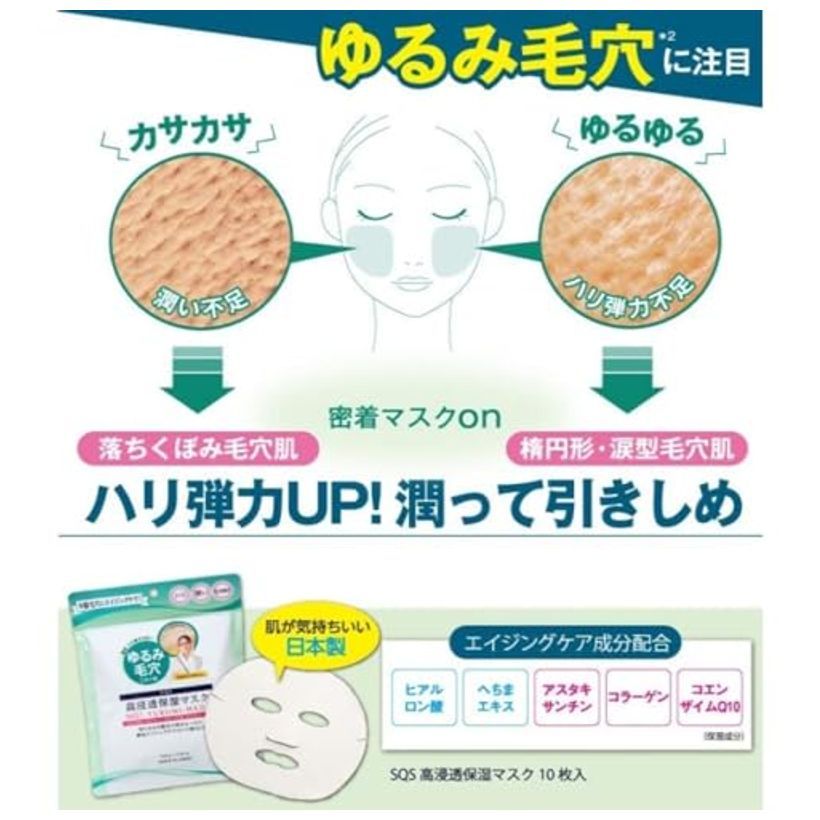SQS High Penetration Moisturizing Mask Pore Care Quick Serum Anti-Aging Thick Sheet Face Mask 10 Sheets Made in Japan Hf