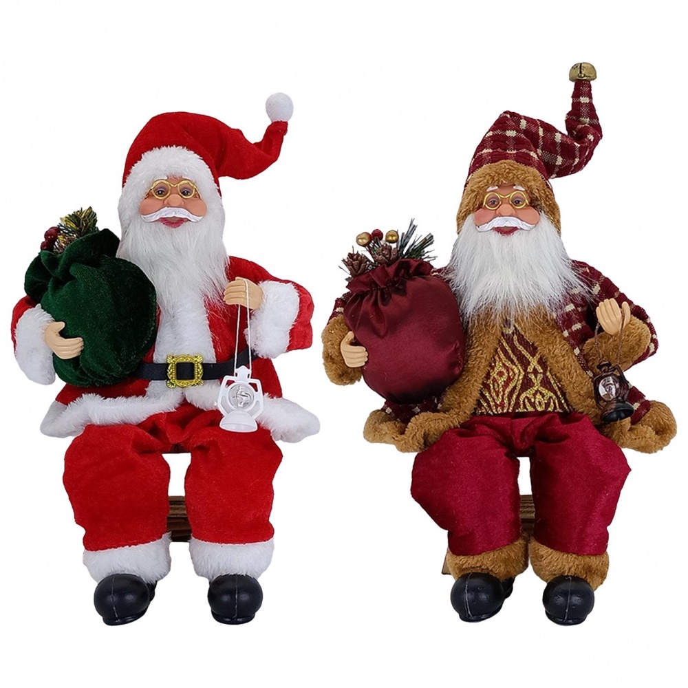 Christmas Sitting Santa Figurines Hand Crafted Santa Claus Plush Doll with Gift Bag & Presents Christmas Decoration for Home Office Xmas Party Ornament Gifts