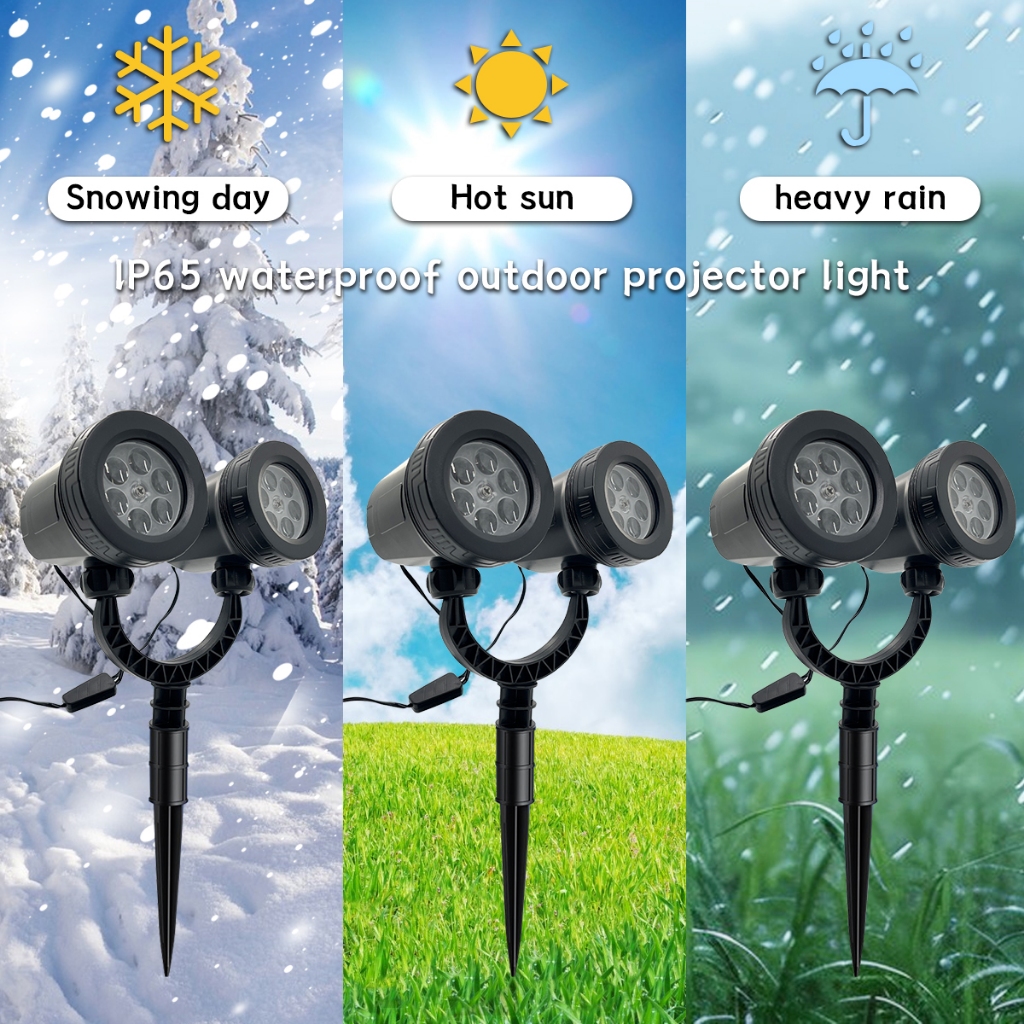Christmas Snowflake Projector Lights, IP65 Waterproof Dual Lens Rotating Snowfall Projection Lamp