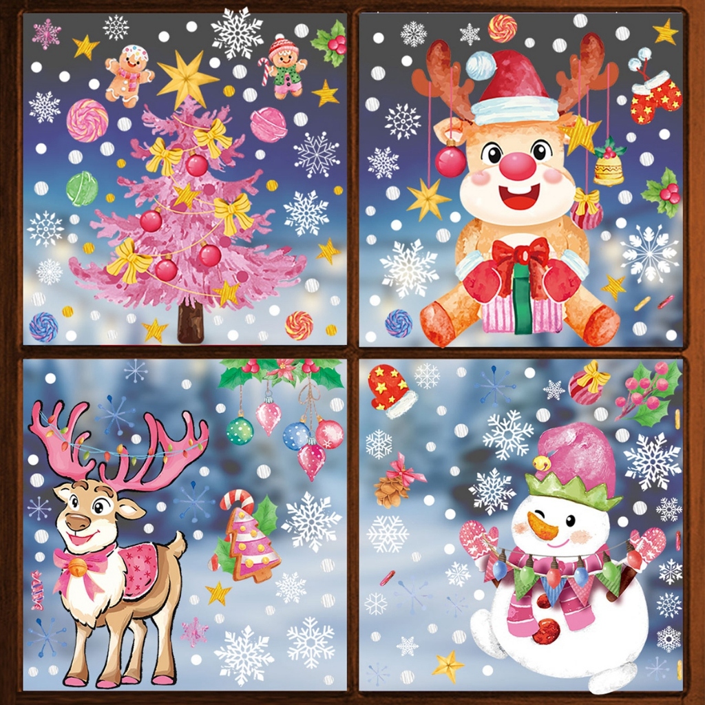 【Multi-styles】Colorful Christmas Stickers White Snowflake Christmas Sticker Wall Decor Santa Claus Glass Window Stickers Christmas Decorations For Home 2025 Xmas Decor