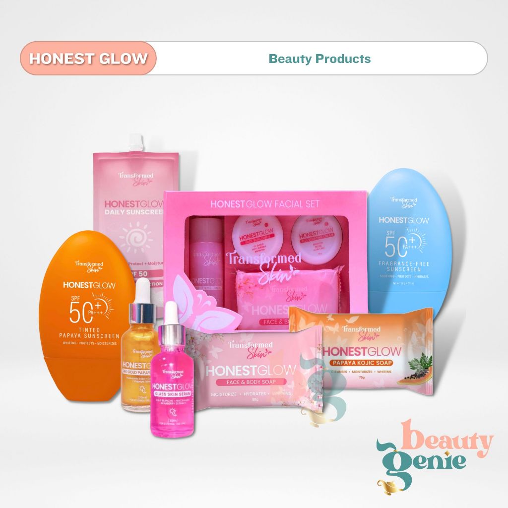 HONEST GLOW Facial Set, Glass Skin Soap, Papaya Kojic Soap, Serum, Sunscreens | Skincare Products