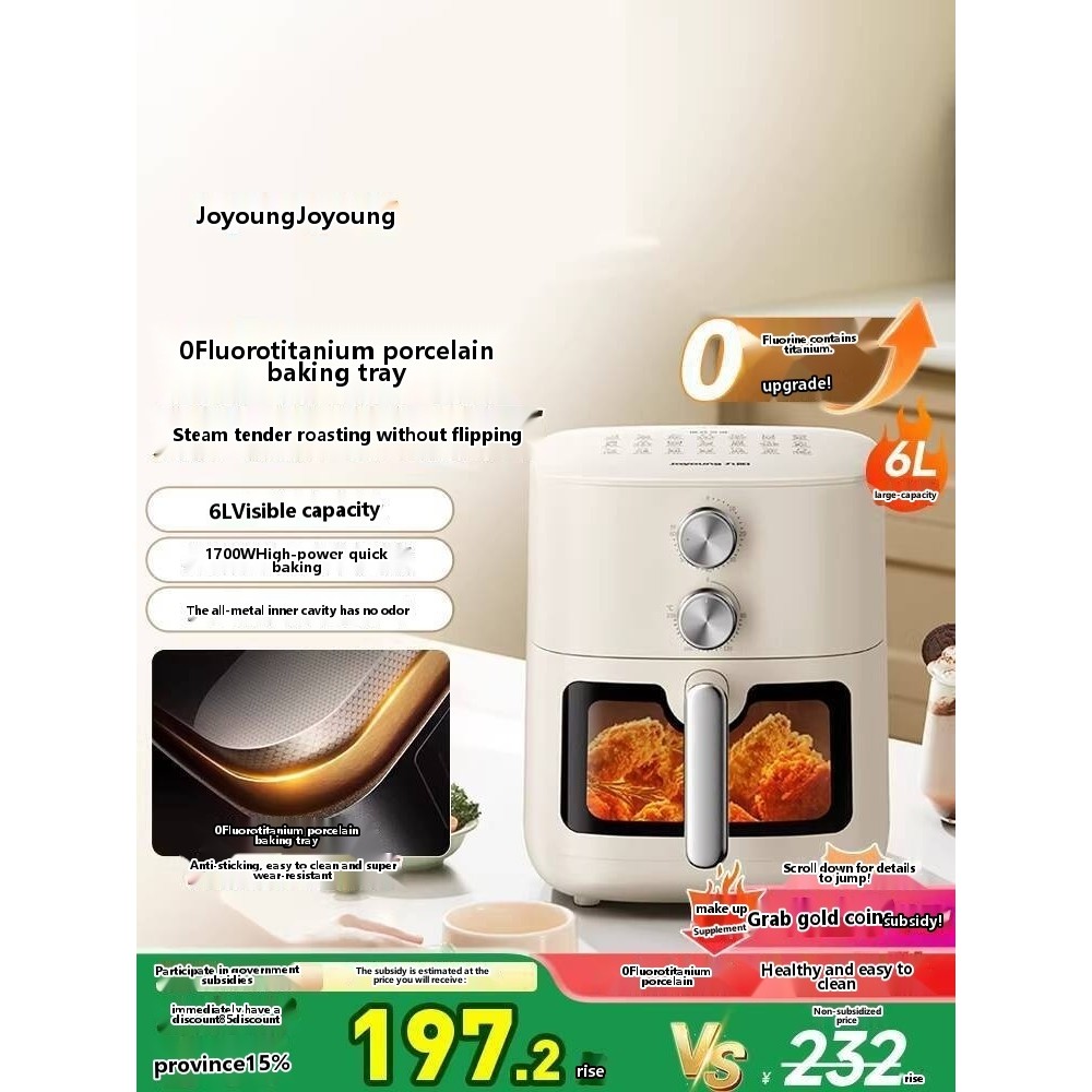 ☑♥ Joyoung No-Turn 0 Fluorine Titanium Ceramic No-Turn Air Fryer 6L Large Capacity Household Steamin