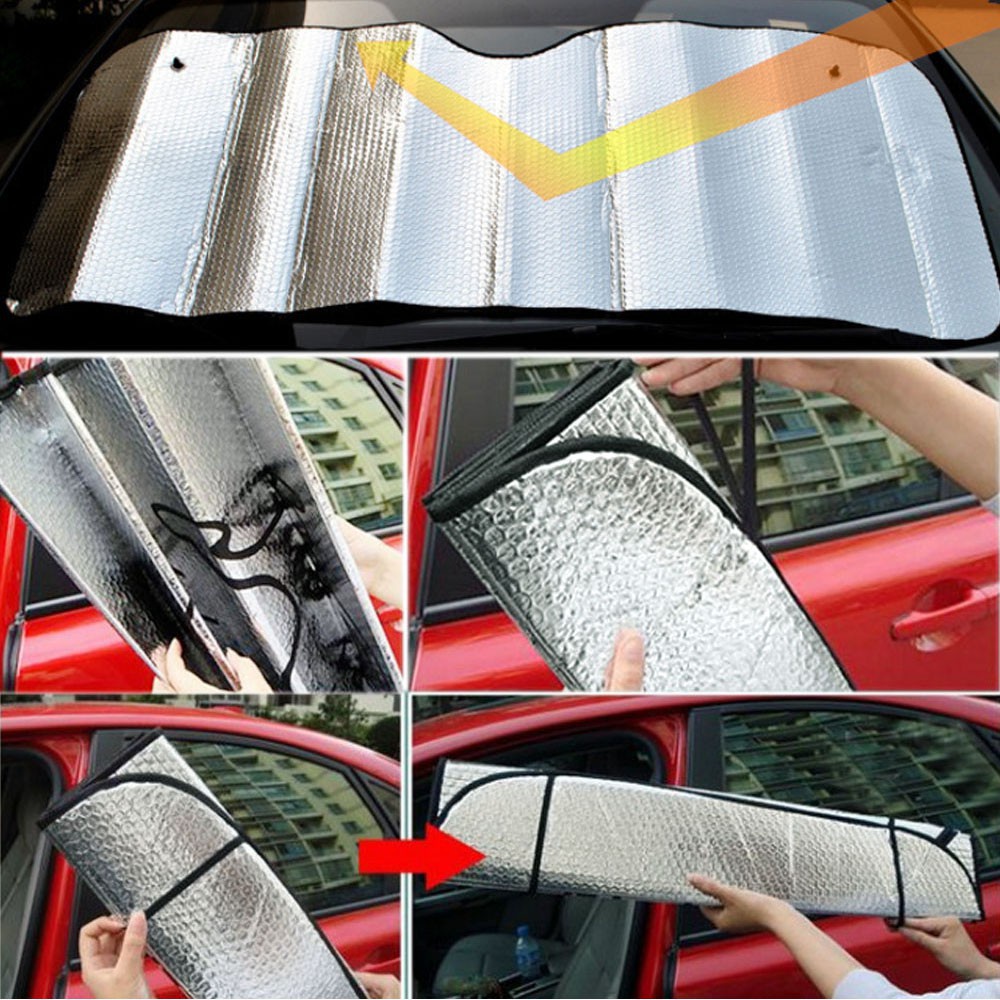 Chrome Foldable Car Windshield Visor Sunshade Screen Visor Cover Block Front Rear Window Silver Front Sun Shade Aluminum Foil