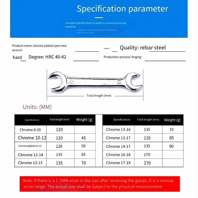 Chrome Plated Double Ended Open Wrench Double Ended Combination Open Wrench (Price 1pcs)