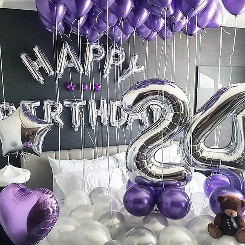 Chrome Silver Romantic Purple Balloons Birthday Party Decorations Wedding Girls Kids Birthday Party Supplies