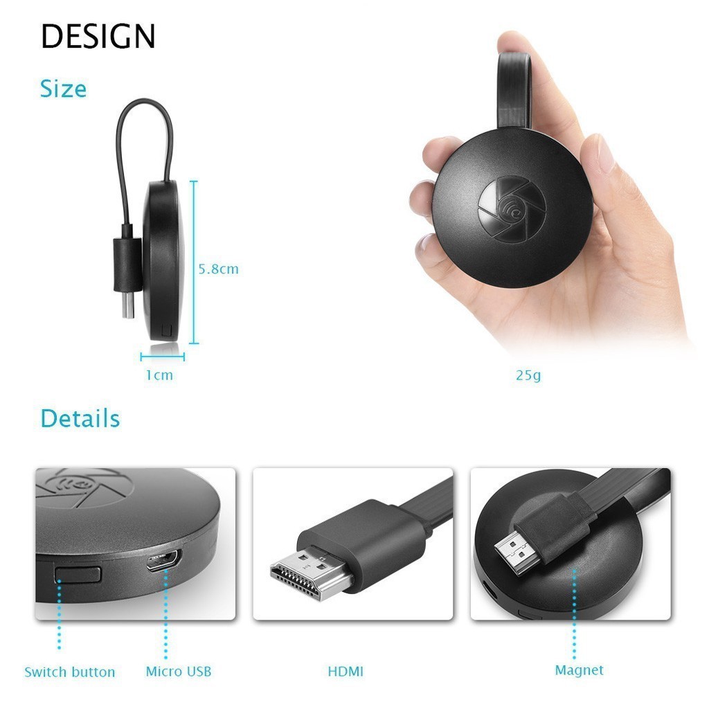 Chromecast G2 TV Streaming Wireless Miracast Google HDMI Dongle Display Adapter Pigflly