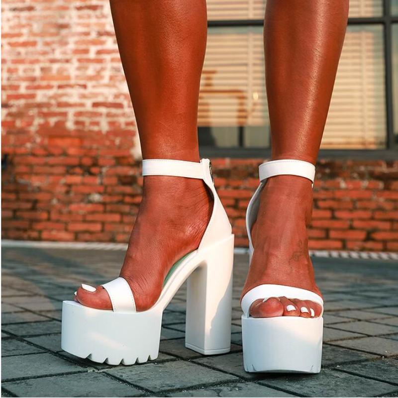 Chunky Heel Platform Sandals Women High Heel Simple 34-43