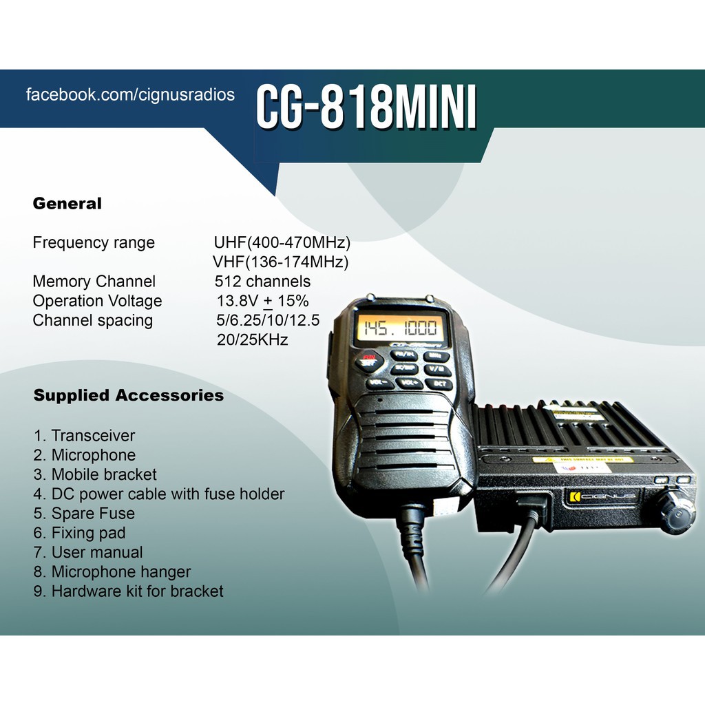 Cignus CG818 Mini or CG-818 Mini Single Band Mobile Base Radio