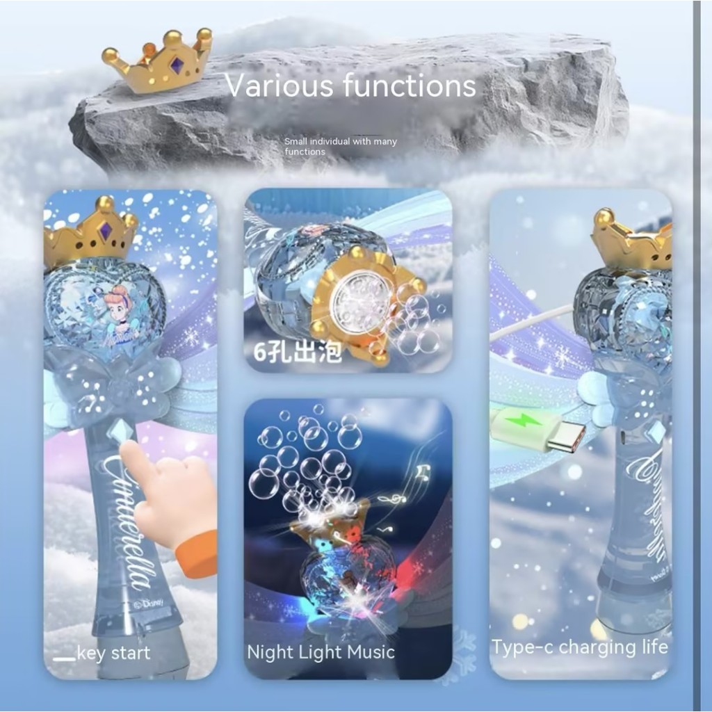 Cinderella Mermaid Bubble Wand Princess Party Favor Magic Wand Bubble Blower Kids Outdoor Fun Gift
