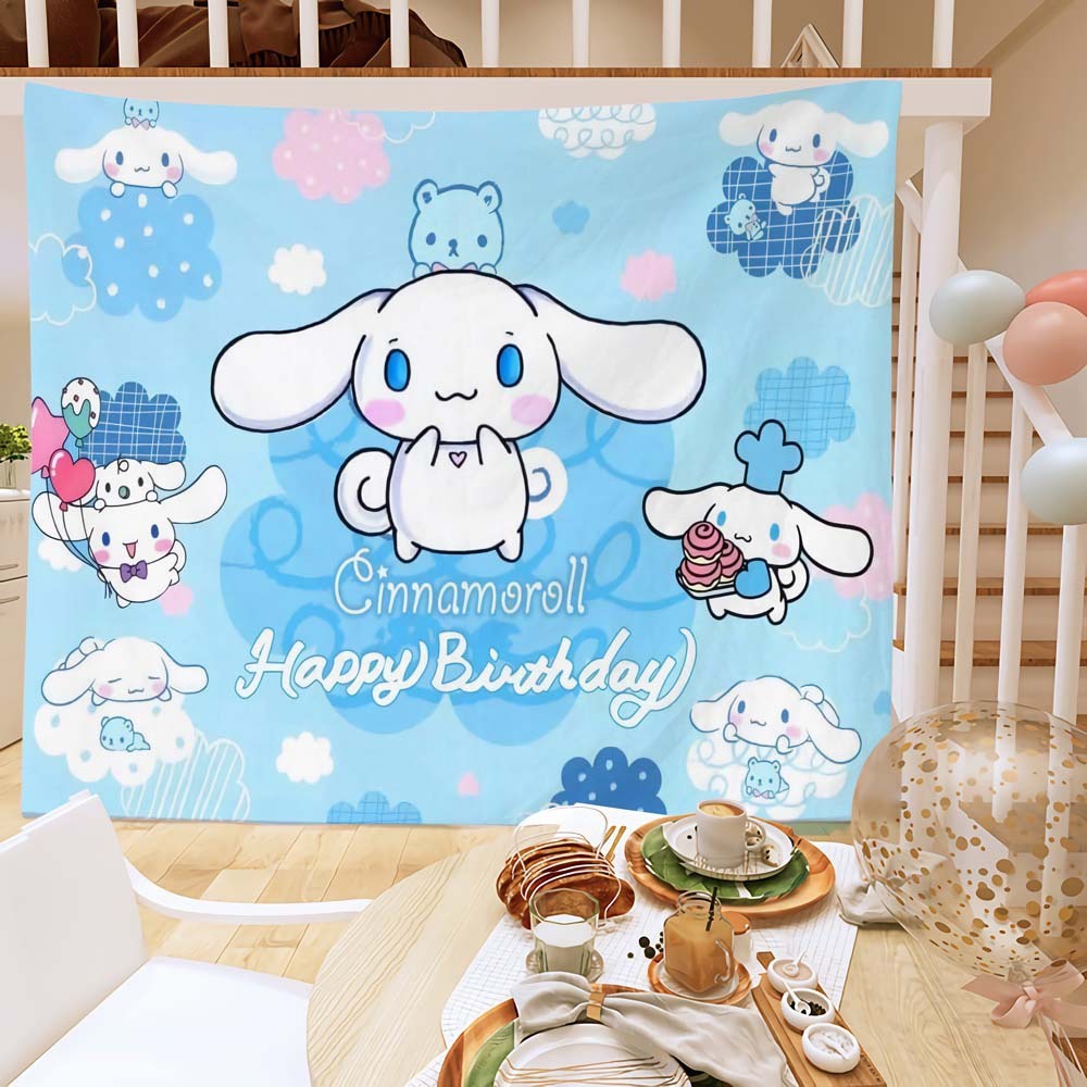Cinnamoroll Birthday Banner Backdrop Cloth Party Decoration Cartoon Background Cloth Bedroom Decoration Party Wall Cloth