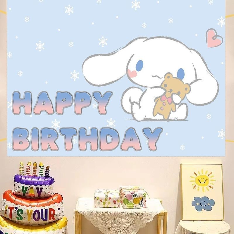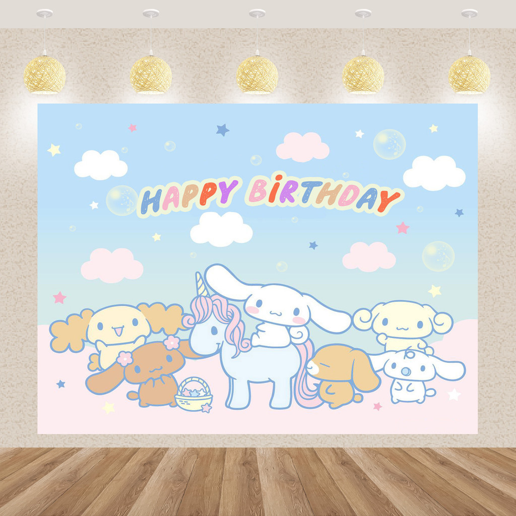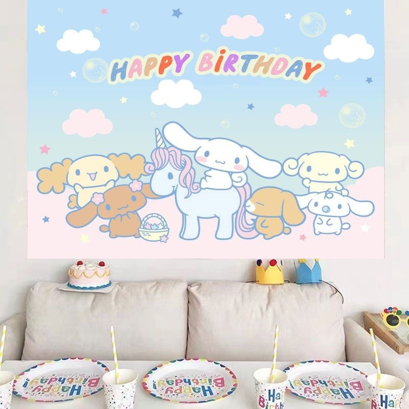 Cinnamoroll Happy Birthday Backdrop Decoration Cloth Sanrio Cute Birthday Background Wall Cloth Tapestry Partyneeds Party Decorations Backdrop For Birthday