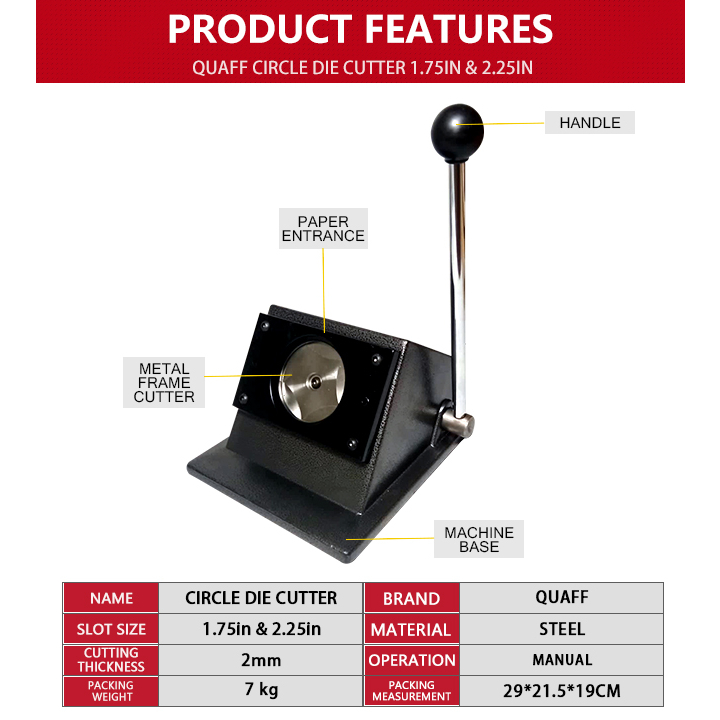 Circle Die Cutter for Button Pins 2.25inches Heavy Duty