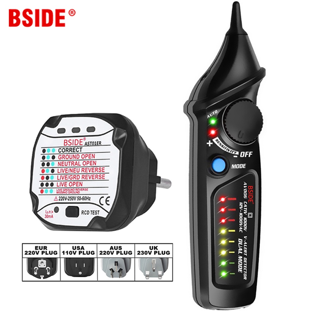 Circuit Safety Checkup Kit BSIDE AVD06+AST01 Voltage Detector And Socket Tester RCD GFCI Test NCV Continuity Neutral Live wire check