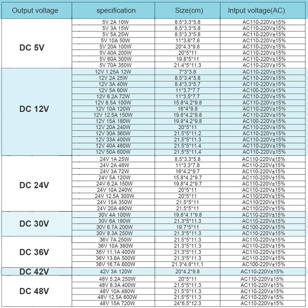 Circuitrocks Metal Case Switching Power Supply Ac 110V 220V DC 5V 12V Adapter 1A 2A 3A 5A 10A 15A 20