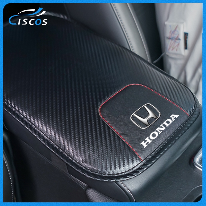 Ciscos Leather Car Armrest Pad Carbon Fiber Center Console Cover For Honda City Civic Brio Jazz Fit