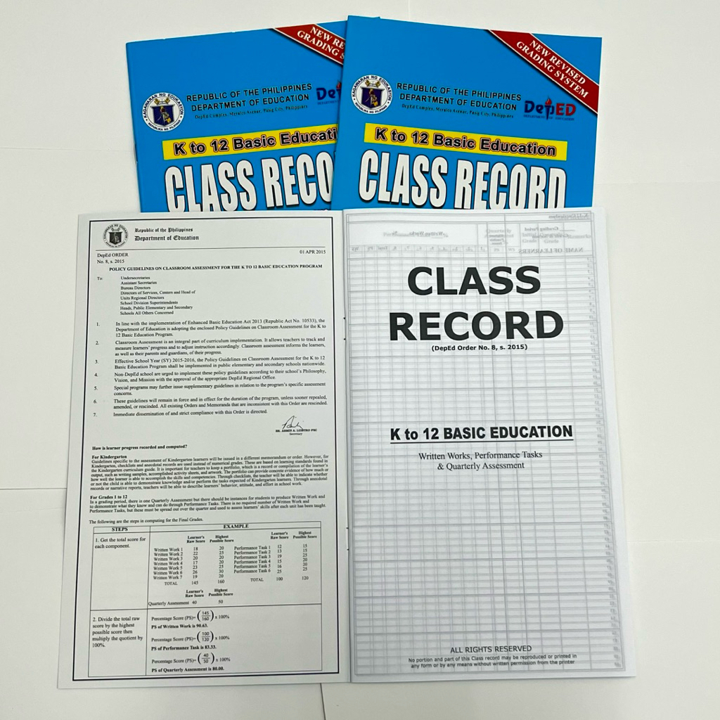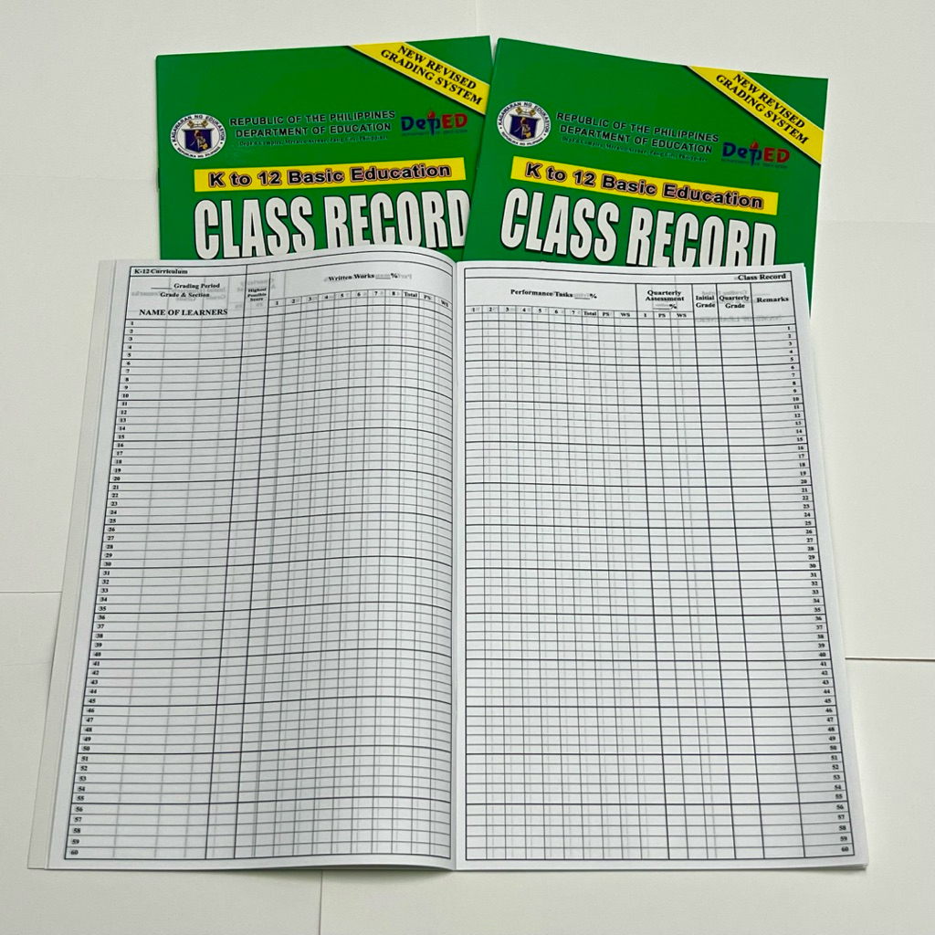 Sold per 1/2pcs Class Record for K to 12 Basic Education (Elementary & High School)