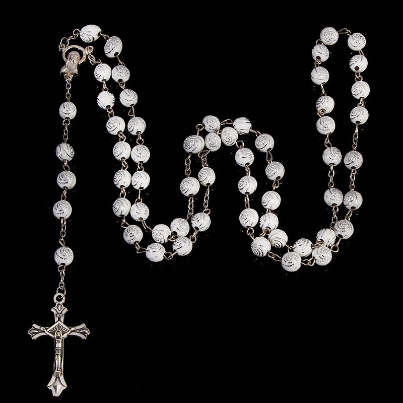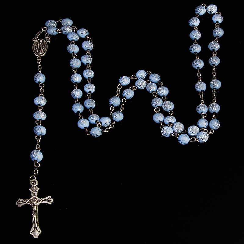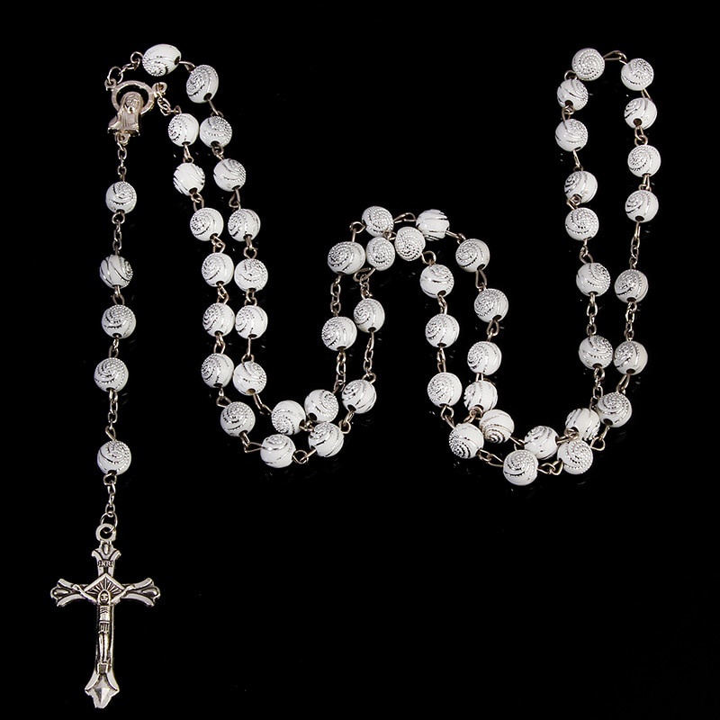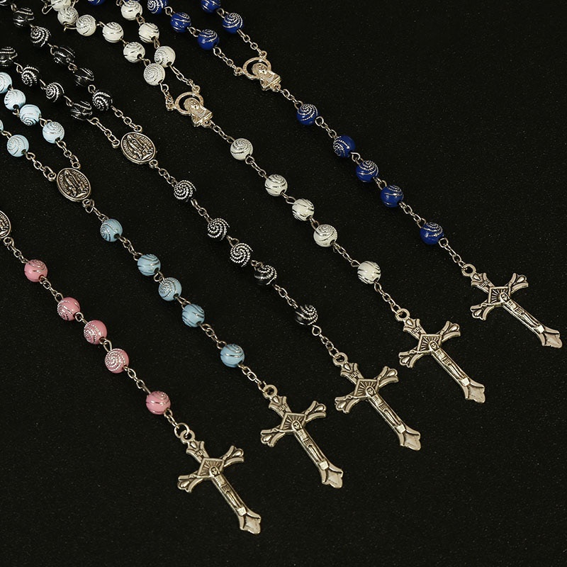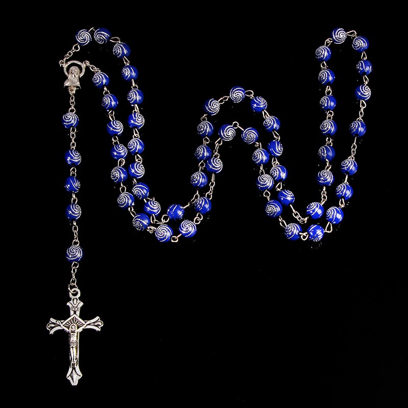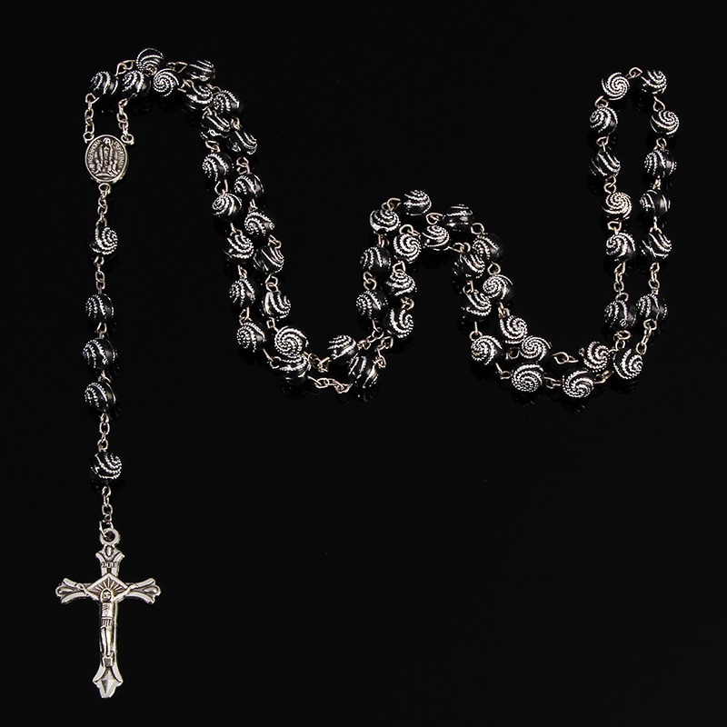 Classic 8mm spiral Catholic rosary necklace, Santa Maria prayer necklace, Christian cross necklace religious jewelry.
