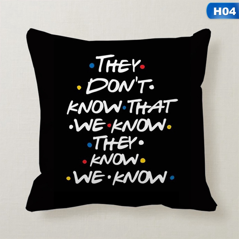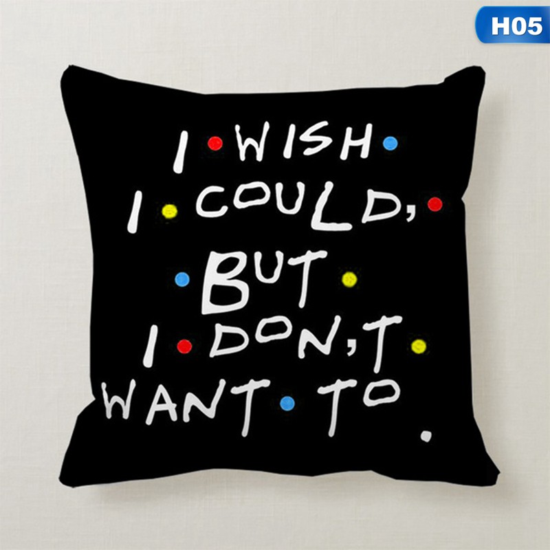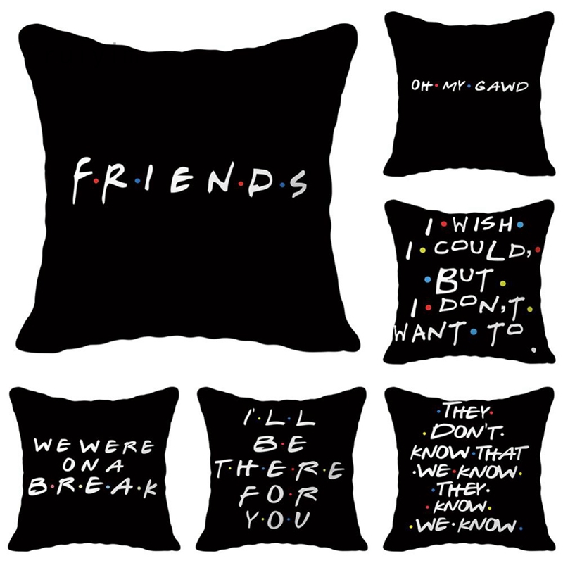 Classic Friends TV Show Funny Quotes Printed Black Pillow Covers Polyester Square Pillow Cases Sofa