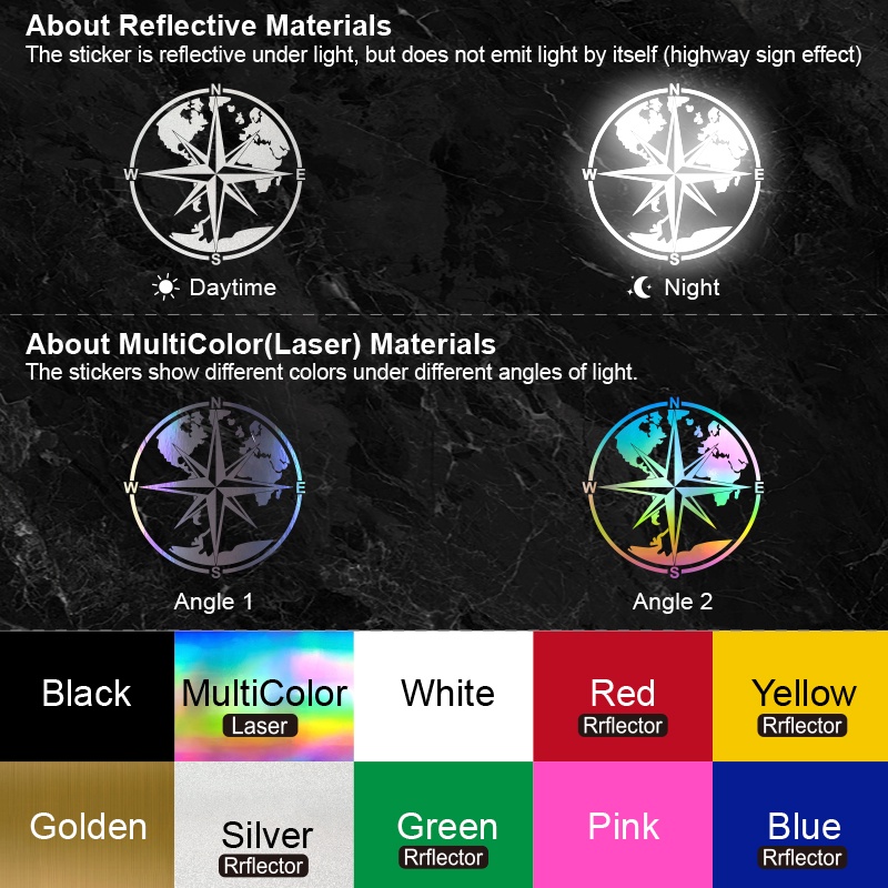 Classic Nautical Compass Reflective Car Stickers Ocean Exploration Automotive Styling Decoration for Trucks Racing SUV Laptop Suitcase