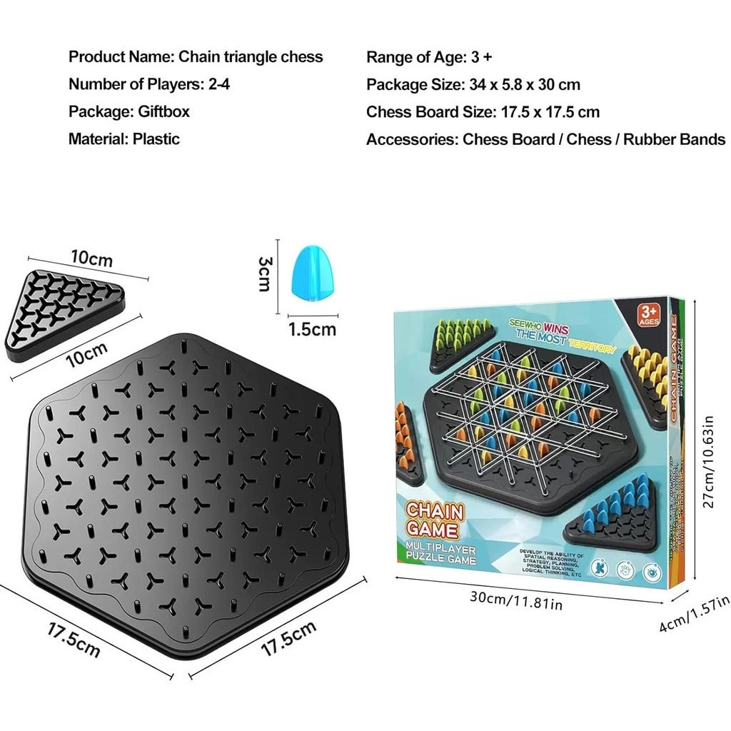 Classic Puzzle Board Game Chain Triangle Multiplayer Rubber Band Chess Triangle Desktop Toys