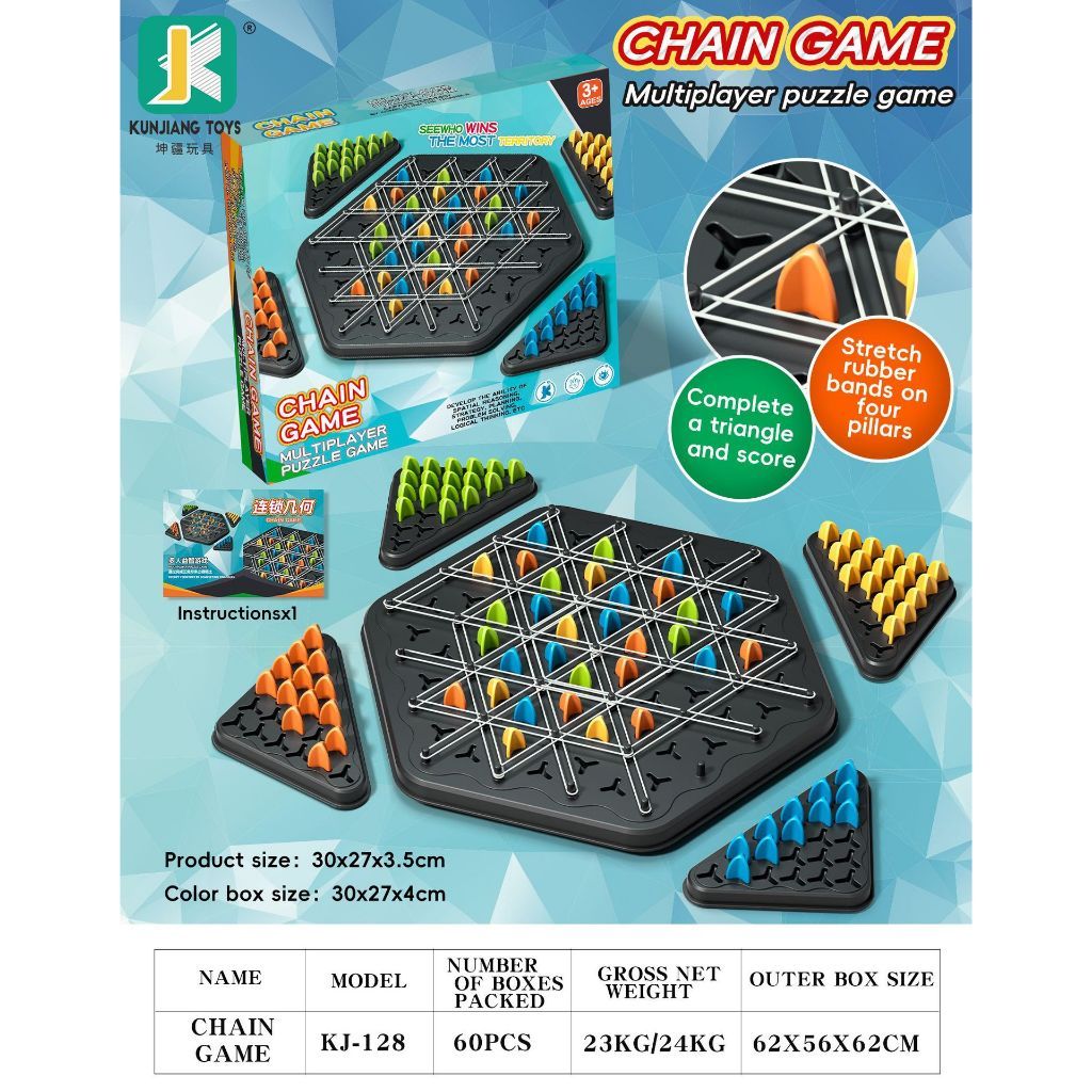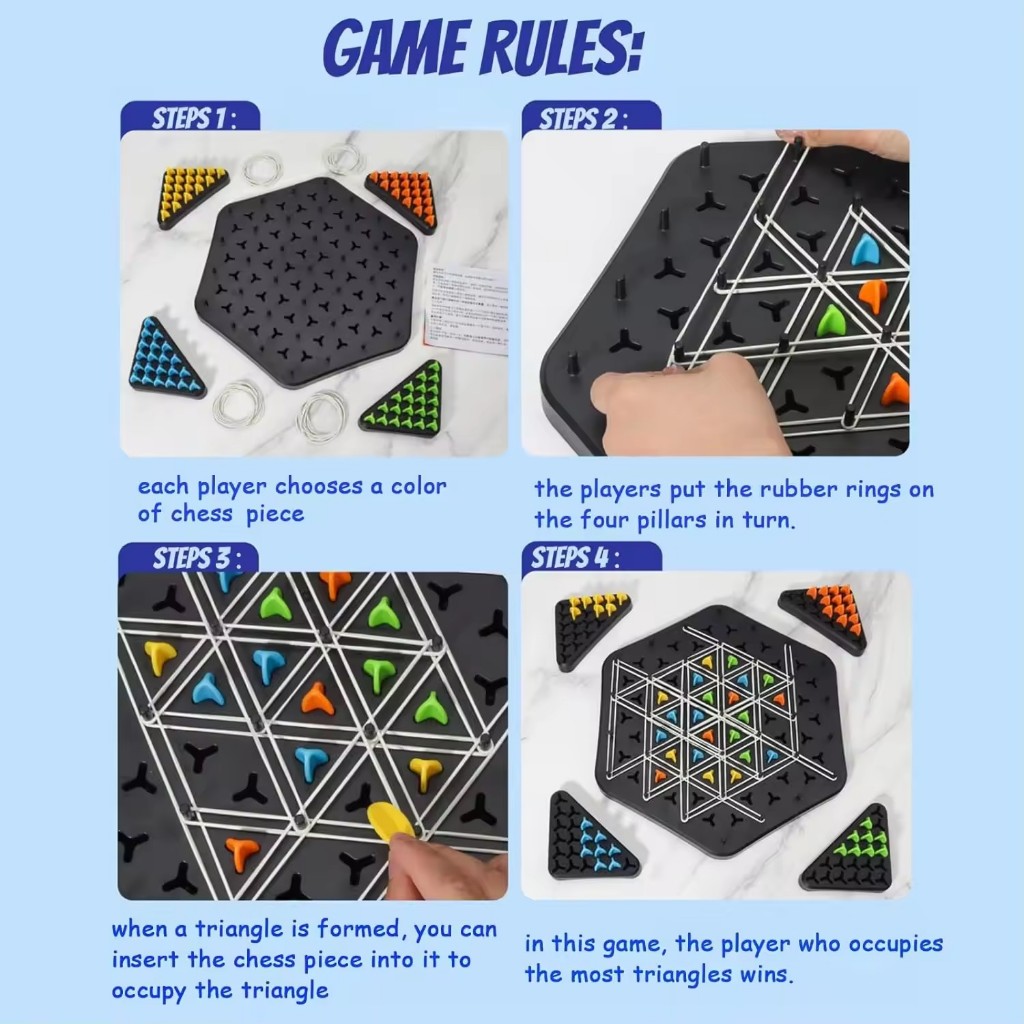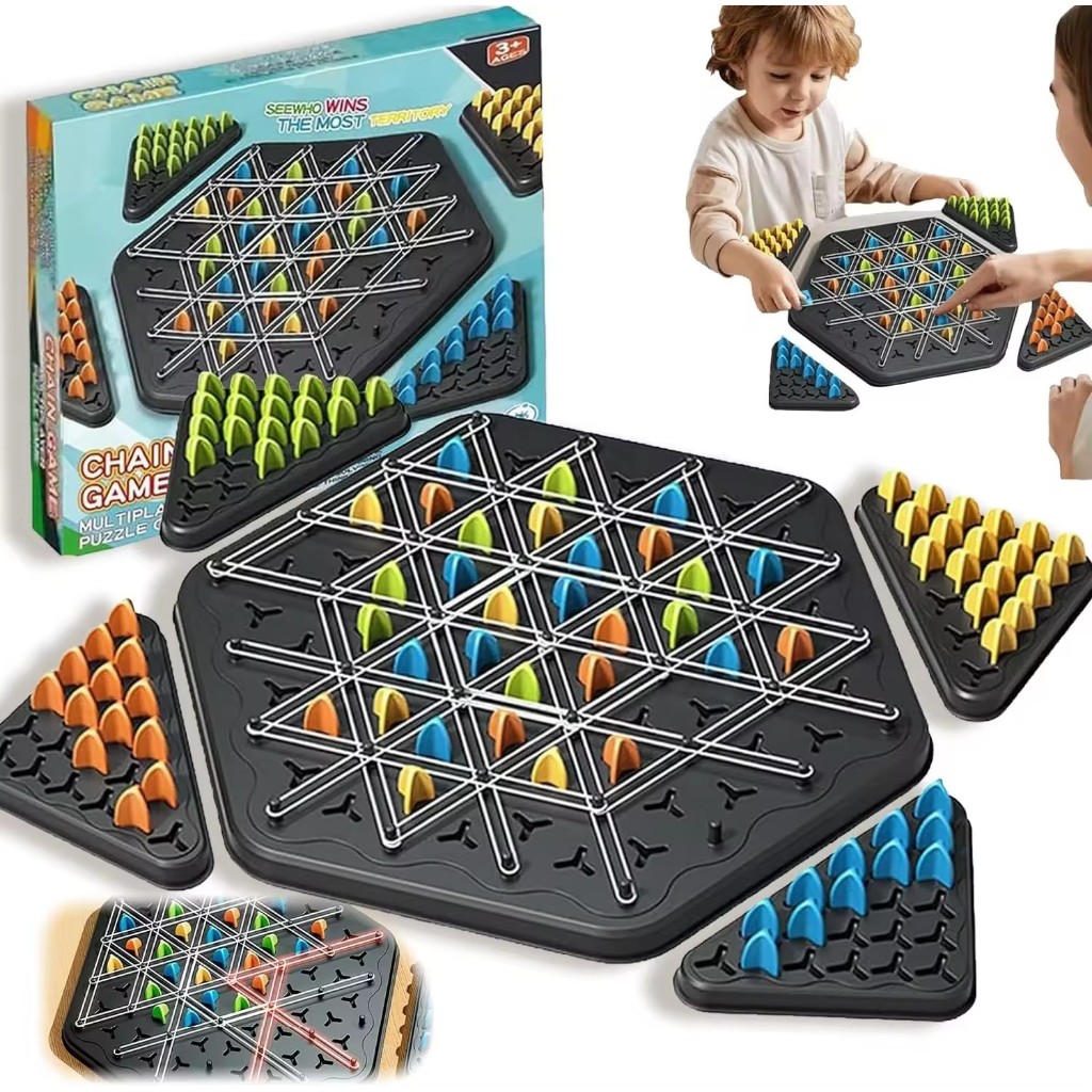 Classic Puzzle Board Game Chain Triangle Multiplayer Rubber Band Chess Triangle Desktop Toys