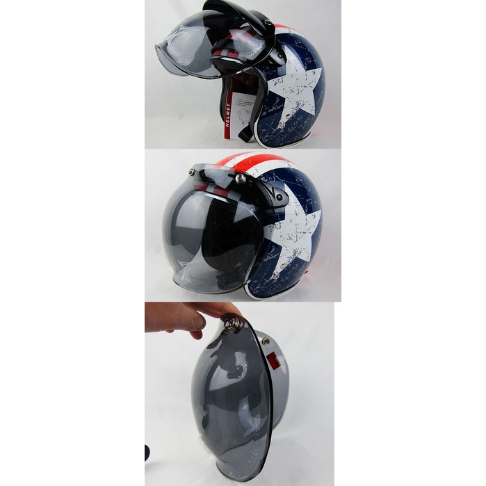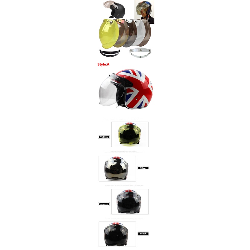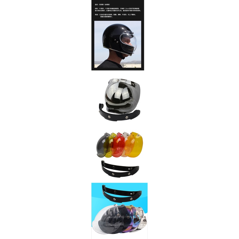 Classic Street Motorcycle Helmet Visor Bubble Shield for 3-Snap Motorcycle Helmets