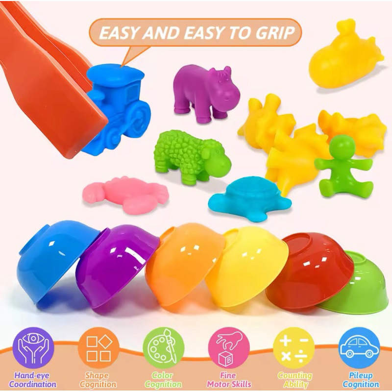 Classification Toy with FREE Sorting Bowl (TABUNG) and 2 Tweezers Counting and Sorting Montessori Game with sorting Bowl and tongs