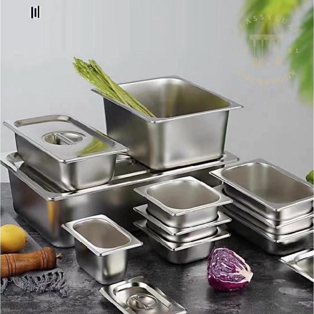 Classy Luxe Stainless Steel Buffet Food Tray Storage Gastronome Container with Lid Serving Dish Tray