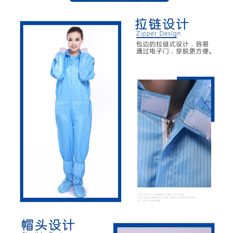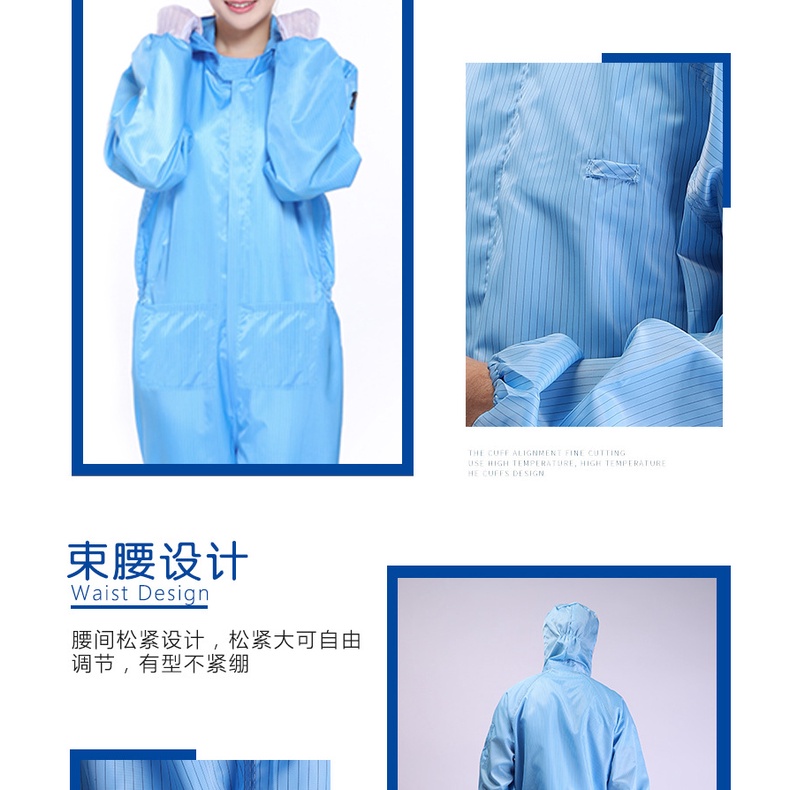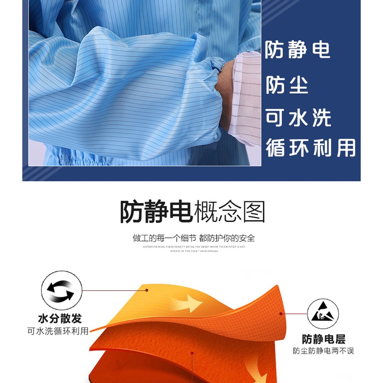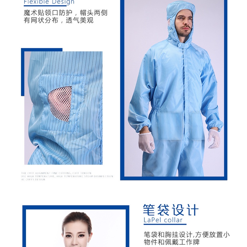 Clean Room Overall with Pocket Coverall ESD PPE Suit Washable Reusable Anti Static Overalls laboratory Cleanroom Cloth