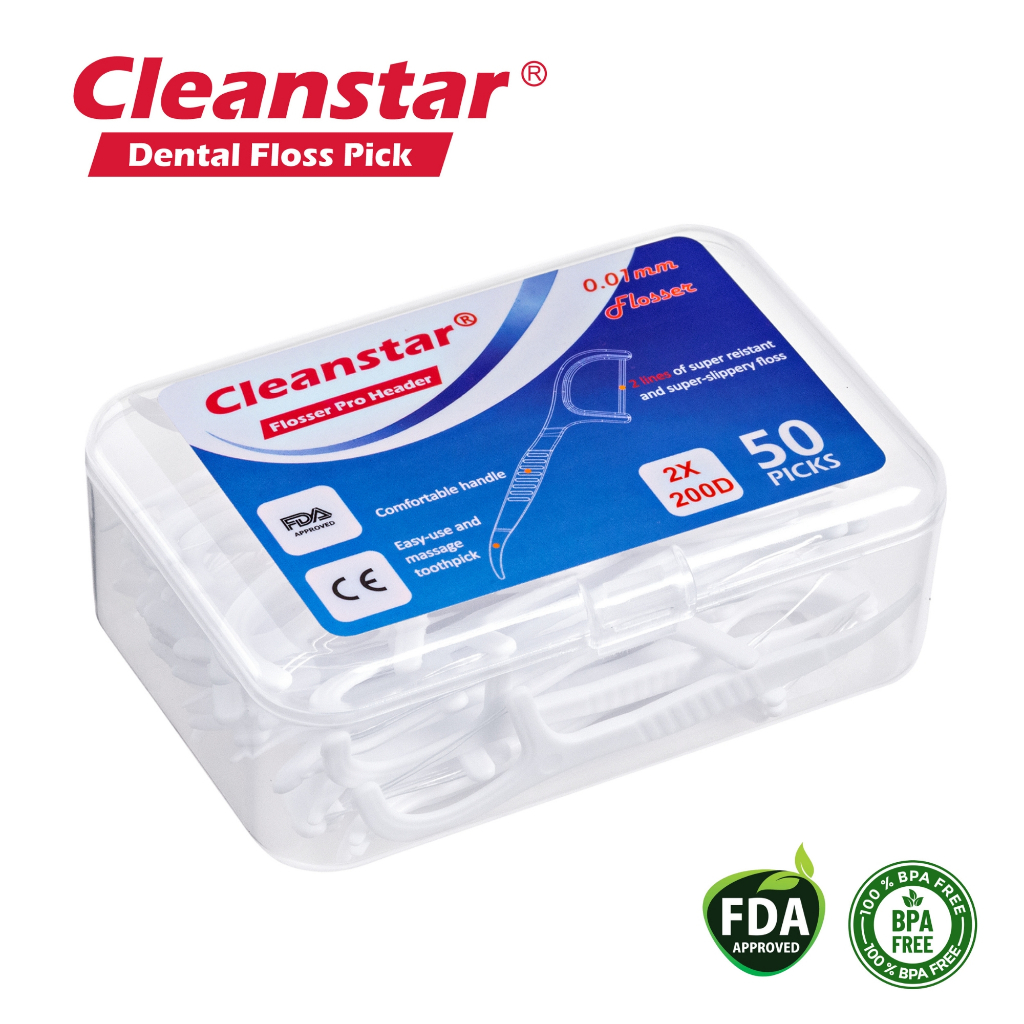 CleanStar Dental Floss Pick Dual Flosser Box 50pcs