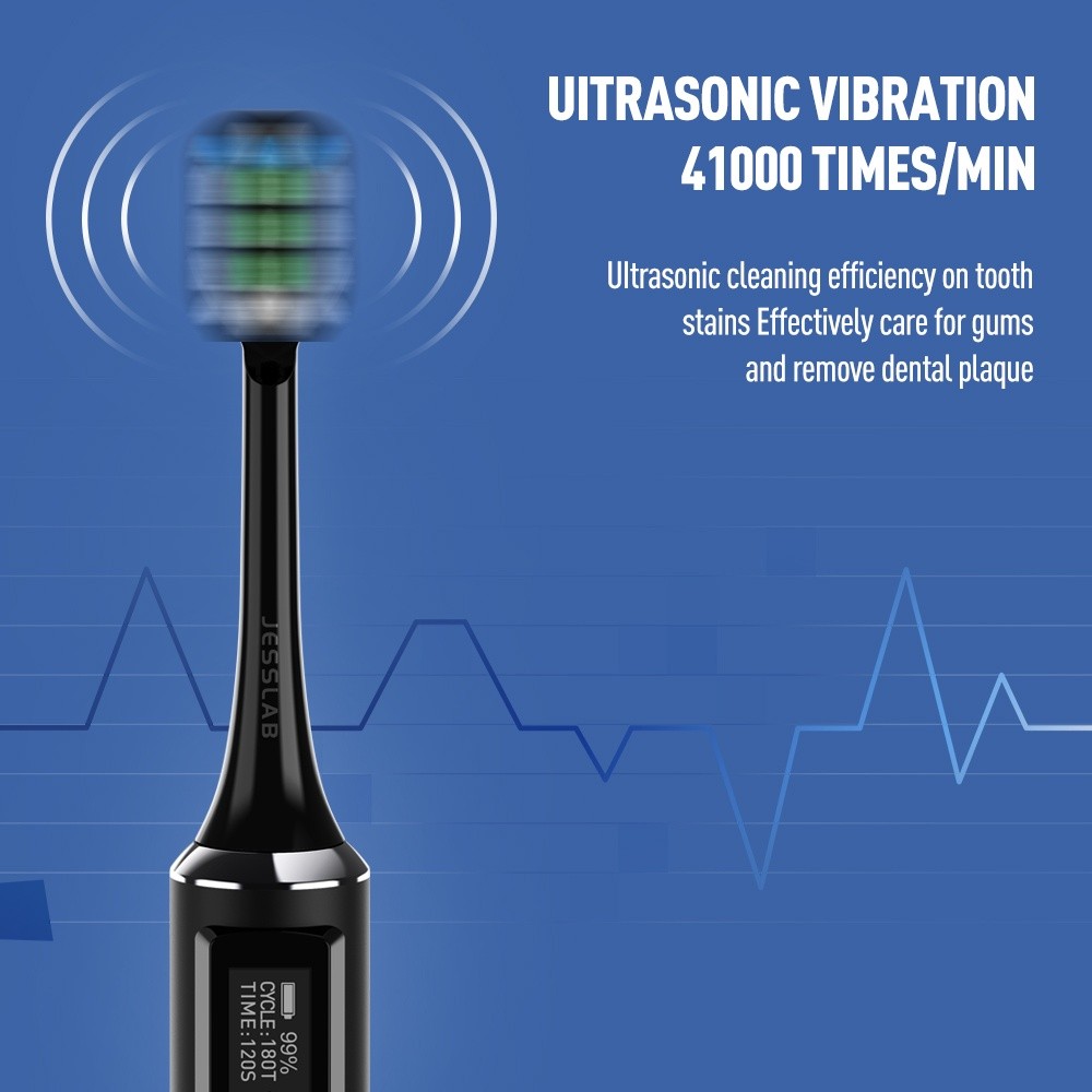 JESSLAB%Zm(Sonic$wV|Electric Toothbrush With LED Smart Display!sI[Five,FI!Modes/Wireless,DR,Inducti
