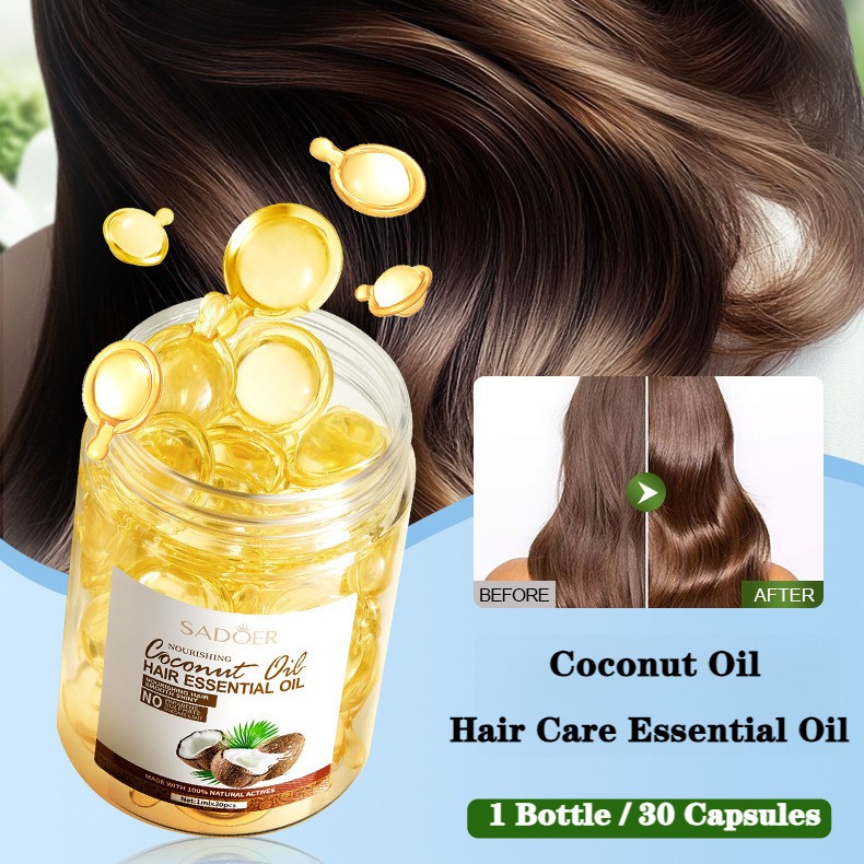 SADOER Coconut Oil Nourishing Smooth Hair Care Essential Oil Capsules 1mlx30pcs