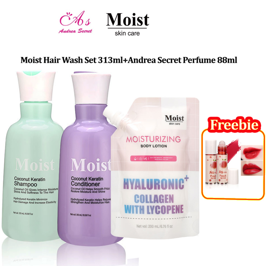 Moist Skincare 313ml Shampoo Conditioner Body Wash Lotion Coconut Keratin Hair Care Hydrate Skin