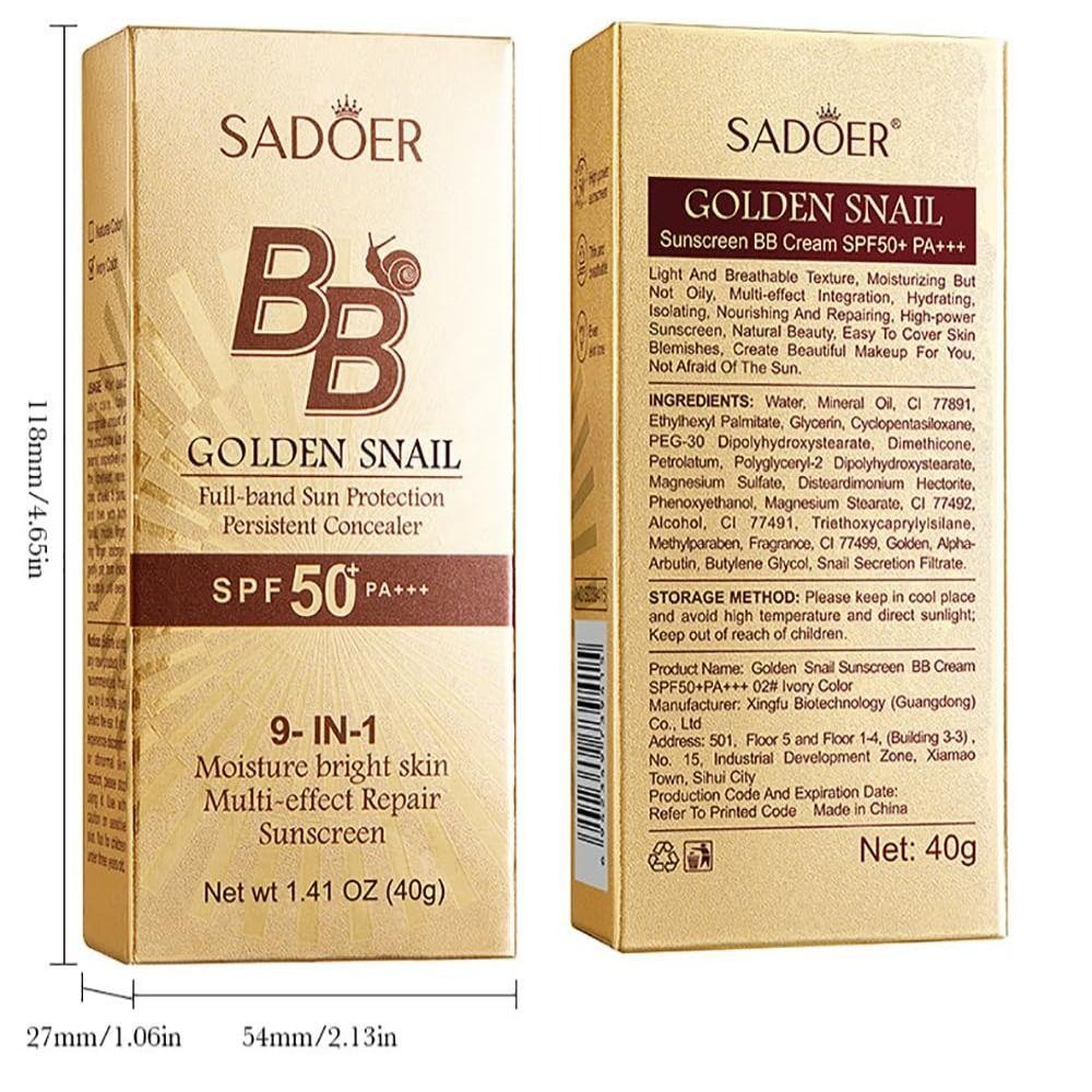 CAPPRICE Gold Snail BB Cream, 9 in 1 Moisture Persistent Concealer, Hot Multi Effect with SPF 50 PA++++ Full Band Sun Protection Repair Sunscreen Unisex