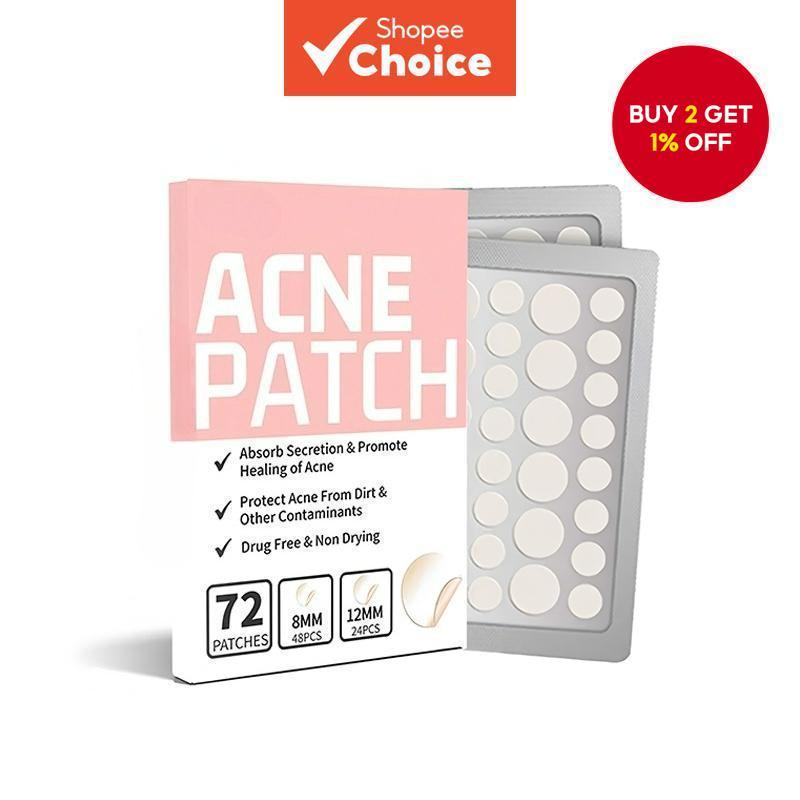72PCS Hydrocolloid Pimple Patches - Invisible Face Spot Cover, Treat Acne, Zit & Blemishes, Suitable For All Skin Types