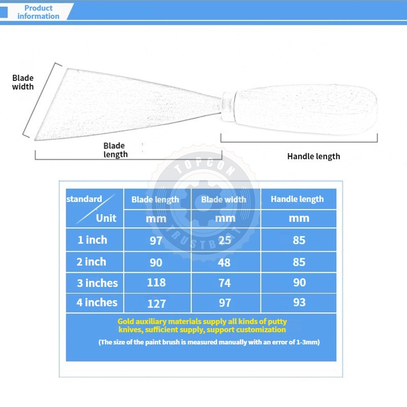 Cleaning Scraper With Handle Stainless Steel Paleta Wall Putty Knife Paint Putty Scraper 1"2"3"4"