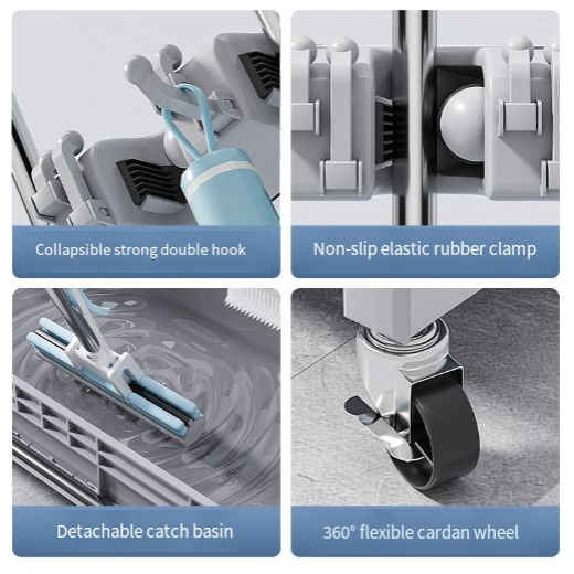 Stainless Steel Movable Mop Rack Storage Rack - Floor-Standing Mop Rack for Hotels and Restaurants, Balcony Broom and Mop Rack