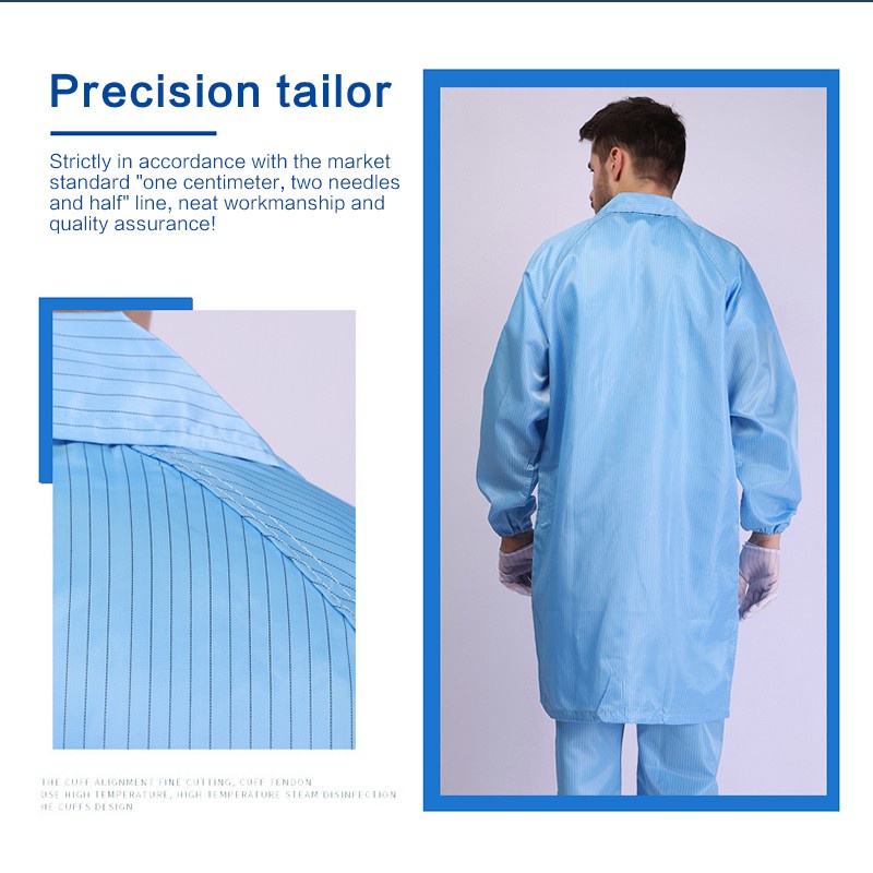 Cleanroom Suit Washable Esd Smock ppe Gown Washable Cleanroom Suit Anti Static White Lab Coat Work Jacket Kerja Baju Bengkel Workwear Coverall Factory