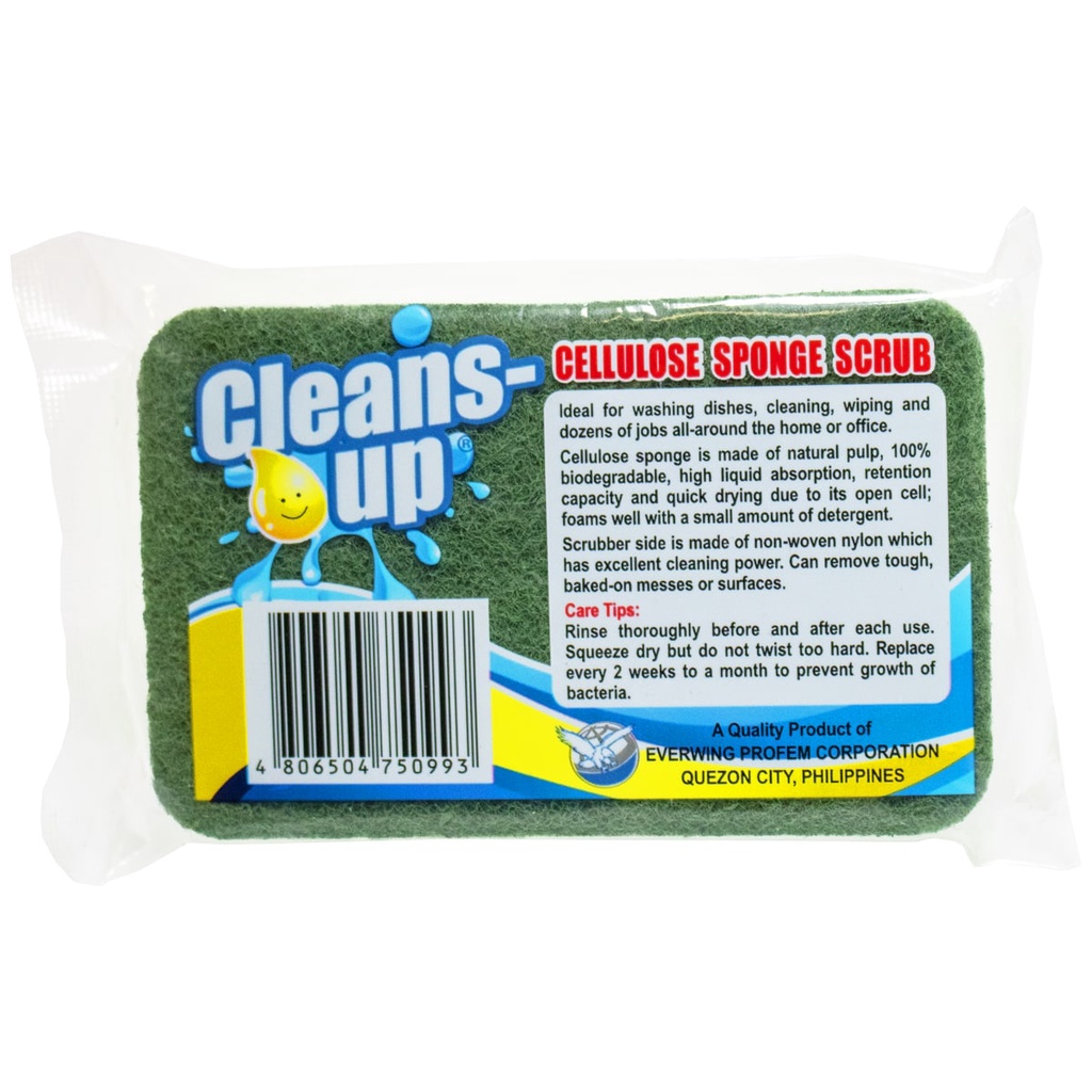Cleans-Up Cellulose Sponge Scrub (kitchen sponge, dish sponge, non-scratch, biodegradable)